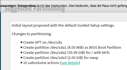 Und ich würde davon ausgehen, dass die default-Werte bei Partitionierung etc. passen?!