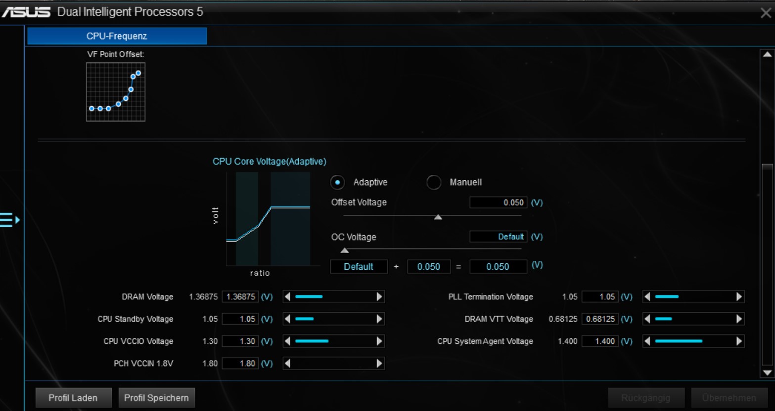 Ich habe vorhin mal vorsichtig den V-Core um 0,05 Volt angehoben. Leider ohne Erfolg.