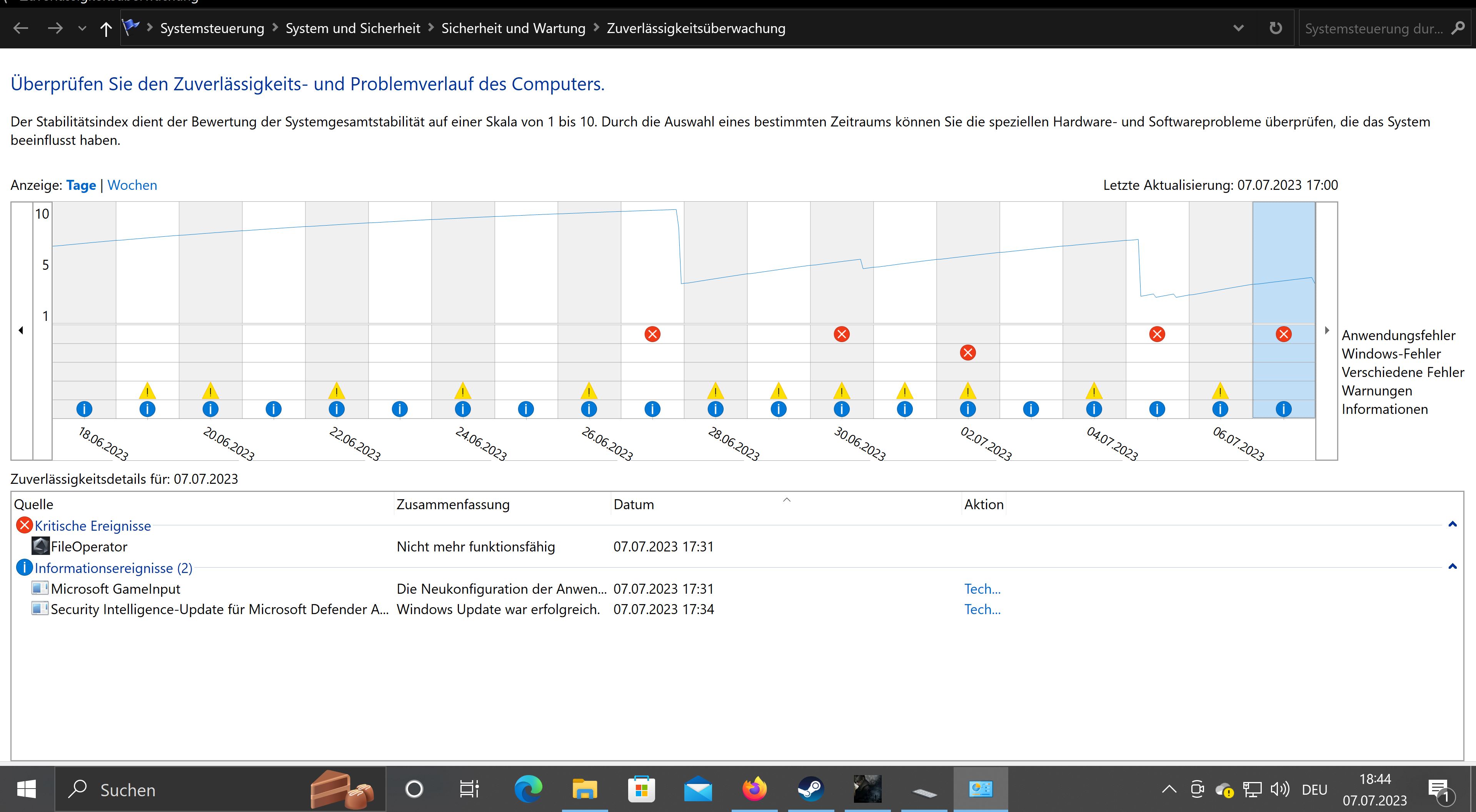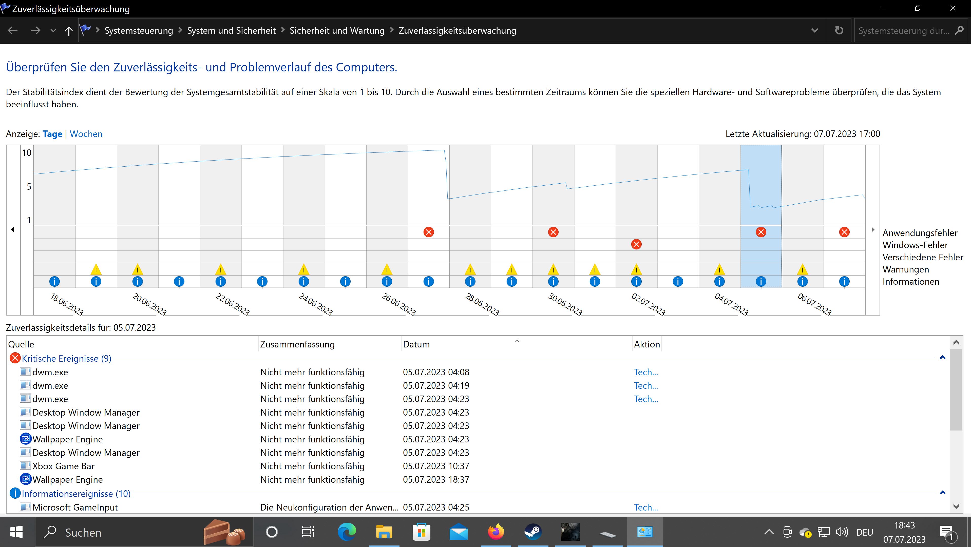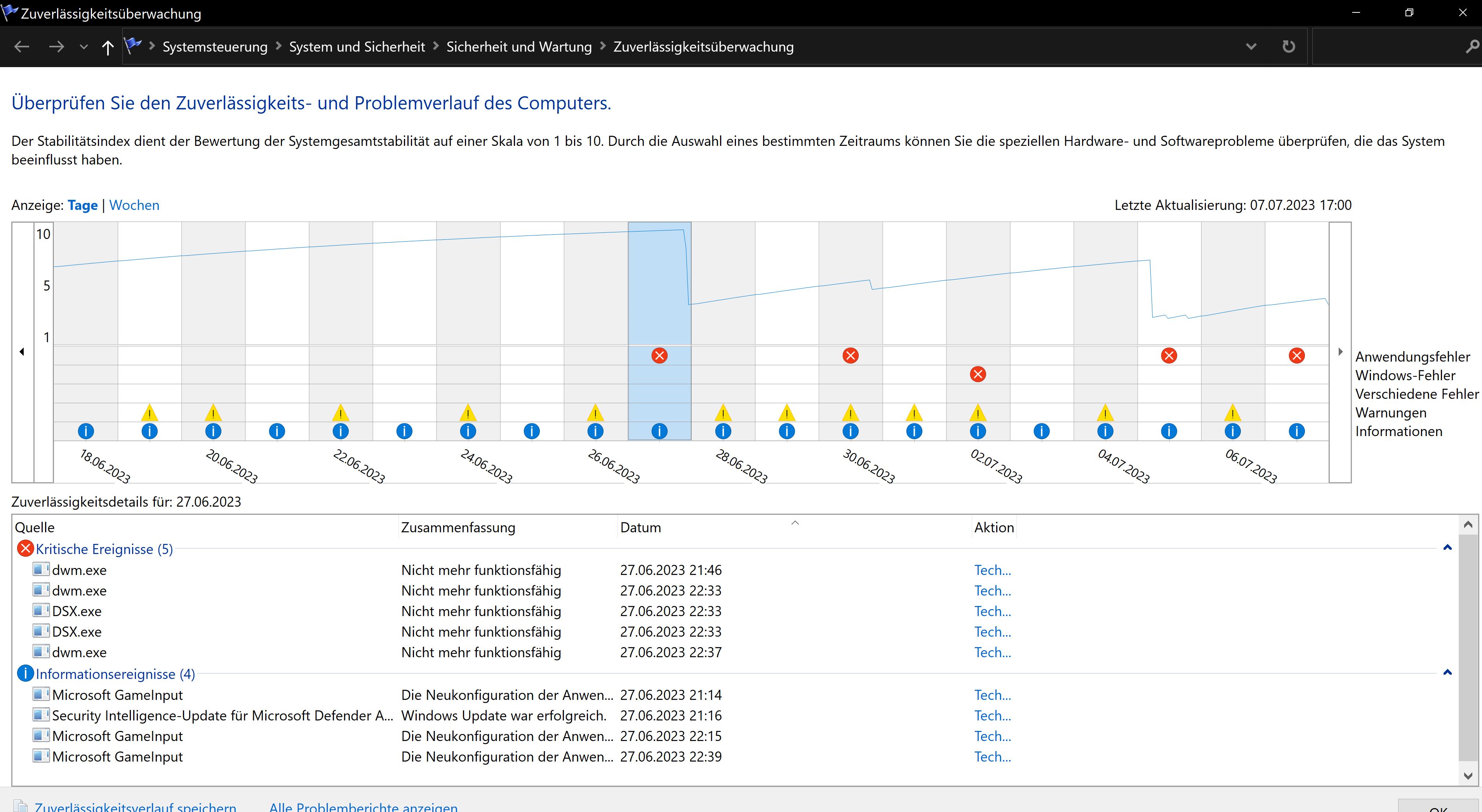 In der ereignisanzeige oder Zuverlässigkeitsvetlauf steht komischerweise nichts was die Abstürze mit der Grafikkarte in Verbindung bringen