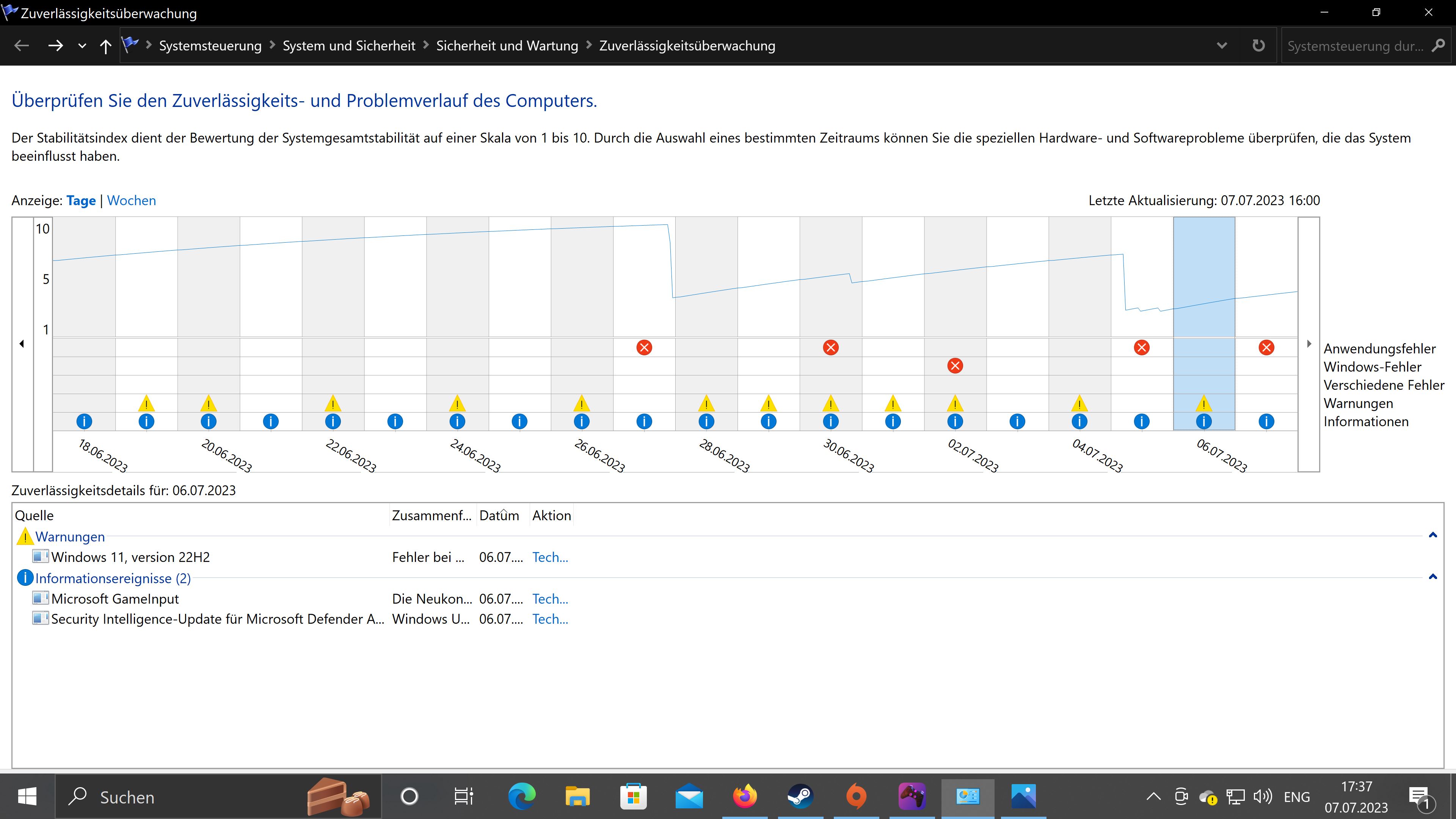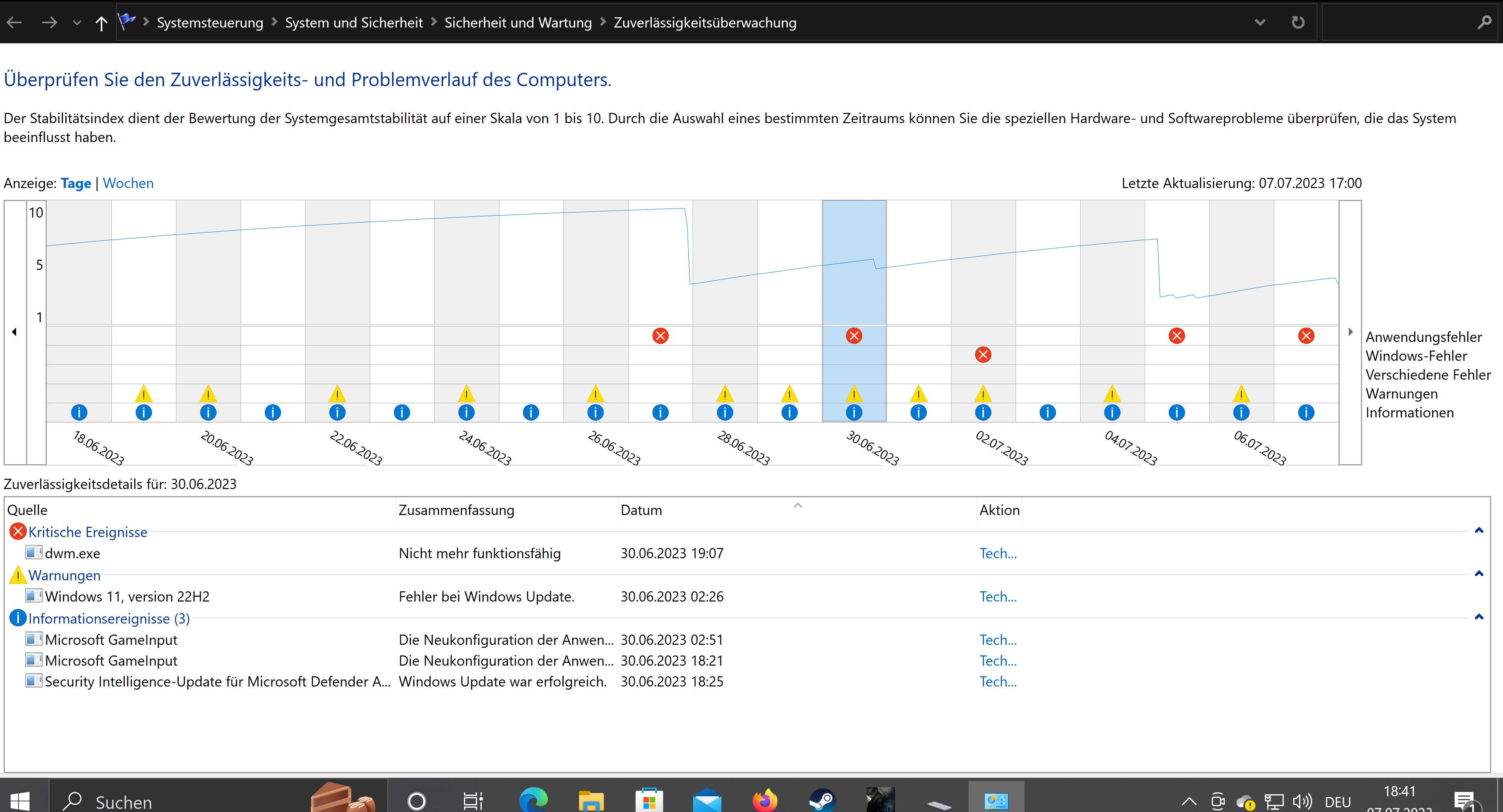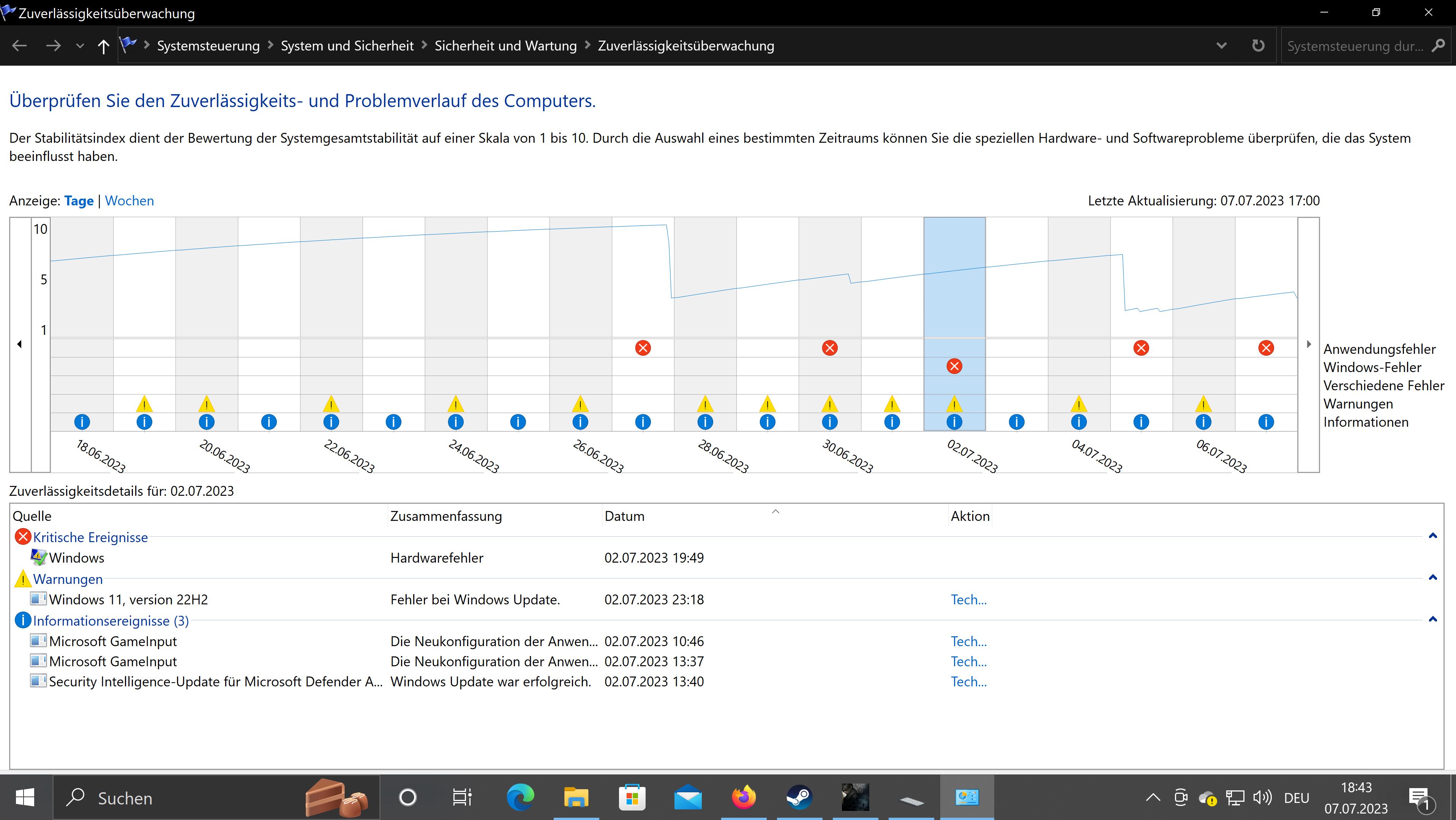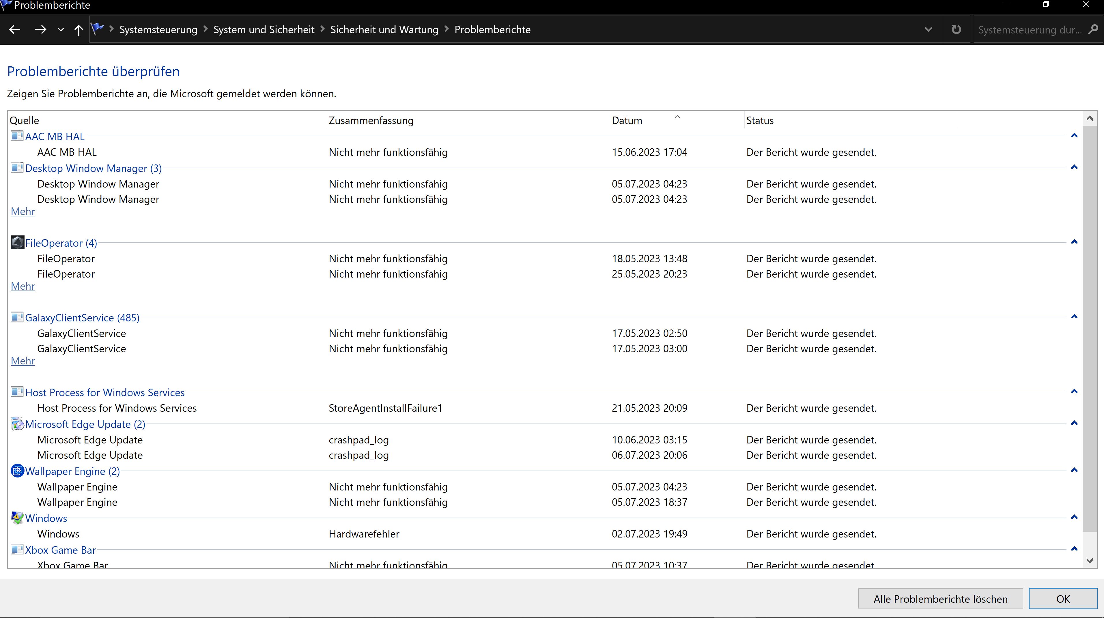 In der ereignisanzeige oder Zuverlässigkeitsvetlauf steht komischerweise nichts was die Abstürze mit der Grafikkarte in Verbindung bringen