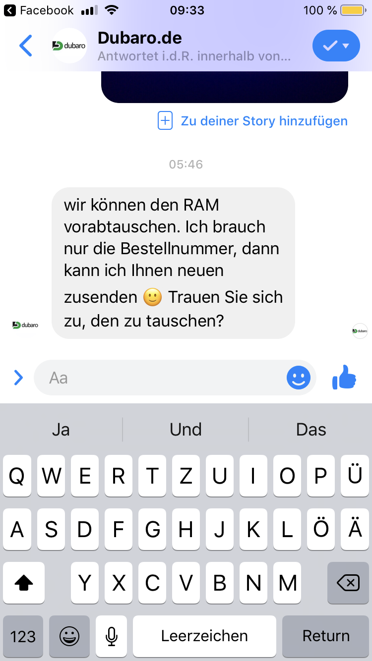 Das kam heute morgen als Antwort. Nachdem ich ihnen Bilder vom ersten memtest gezeigt hatte der Fehler angezeigt hat Und gesagt habe dass ich mehrere bluescreens hatte.