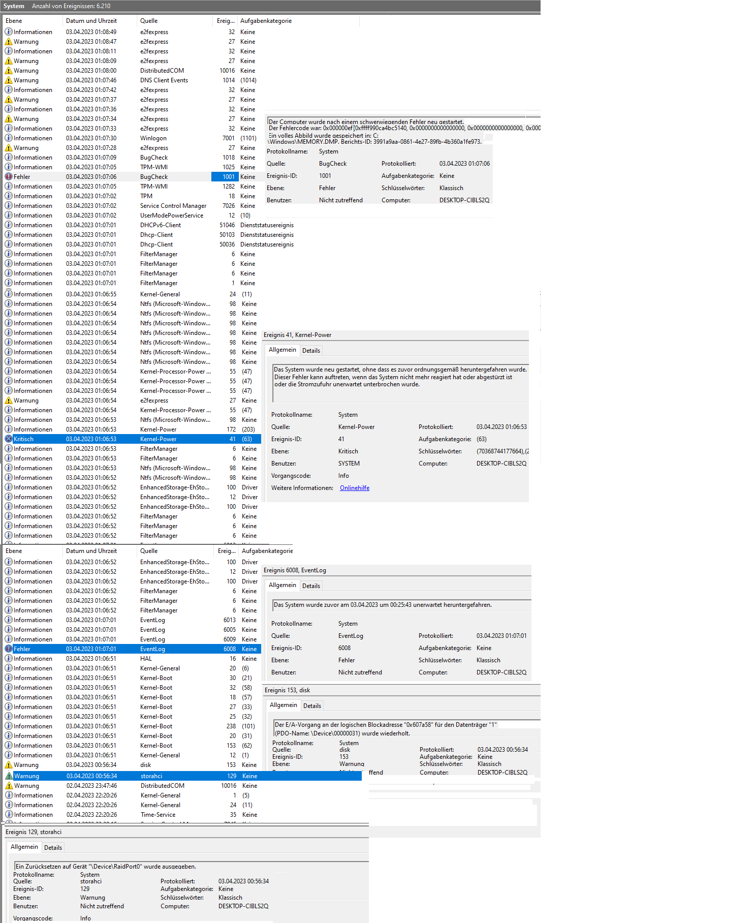 Also das heißt im Dump steht das nicht sondern nur in der Ereignisanzeige!?!eYc schrieb:Das war doch jetzt schon mehrfach Thema, und du hattest die erste Auswertung mit dem „IMAGE_NAME: storahci.sys“ auch selbst gepostet!