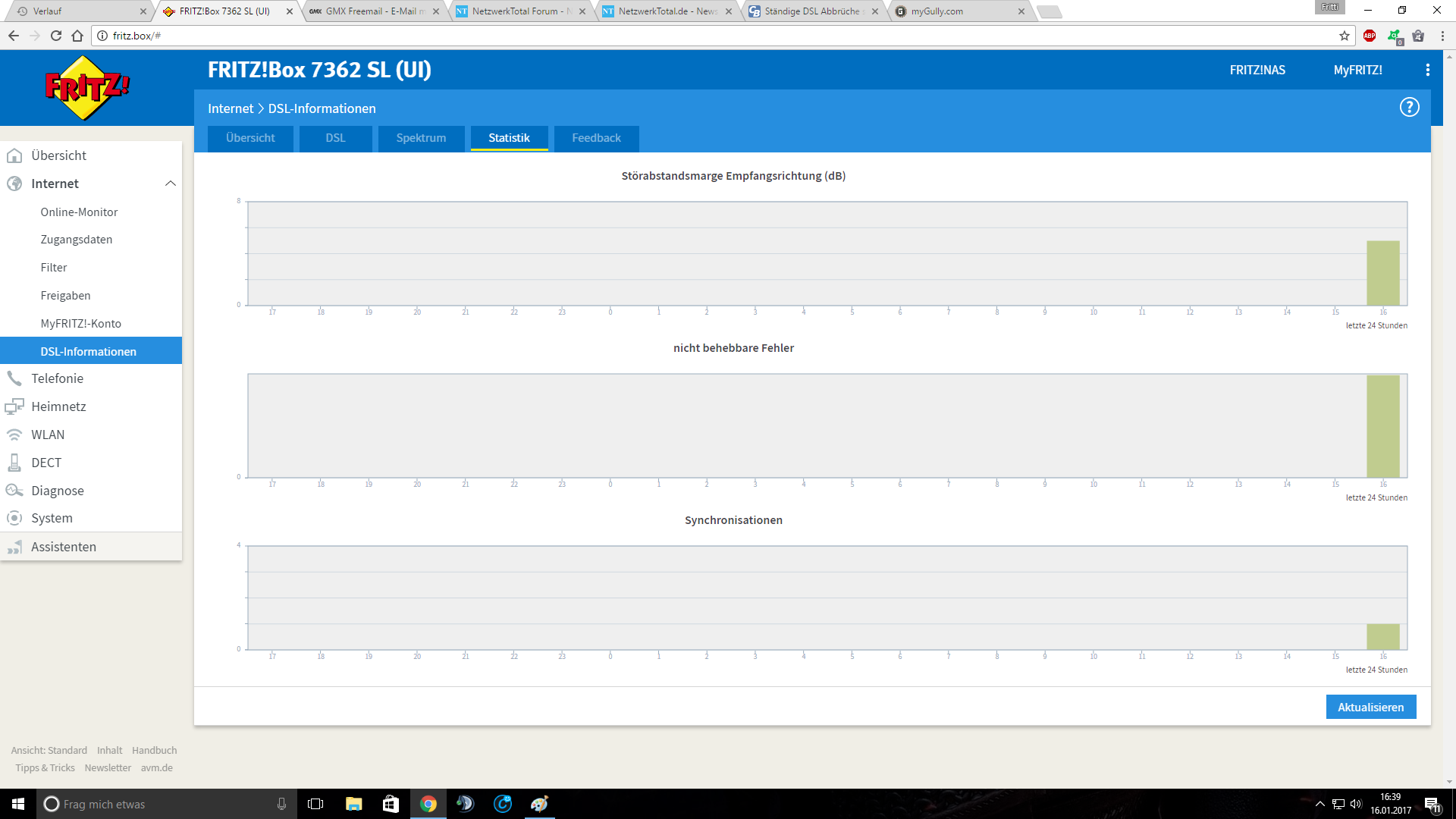 seit einigen Wochen habe ich das Problem, das die DSL-Verbindung der Frizt Box ständig abbricht sobald ich meinen Desktop Computer mit dem Internet verbinde.