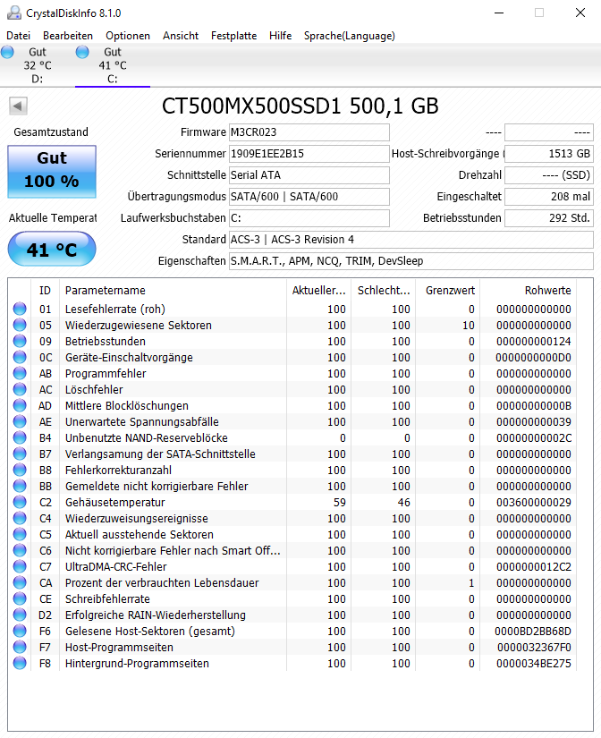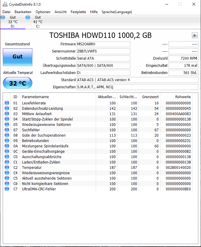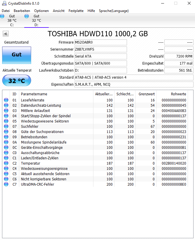 Die CRC Fehler sind zuletzt jeweils unverändert bei beiden Platten, also dürfte er auch aktuell keine Probleme damit haben.