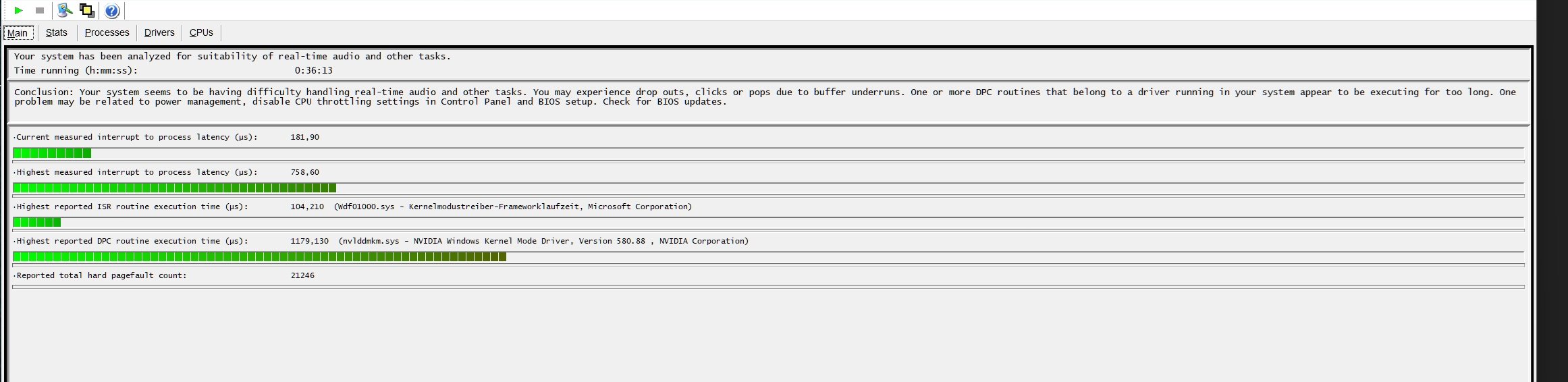 LatencyMon (36 Minuten Laufzeit):