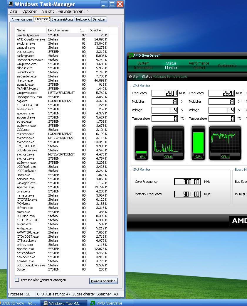 Bei der Systemauslastung steht das komplette System !! Jeder Programm ist davon betroffen ! Selbst TS oder Skpye oder Games wie WoW.