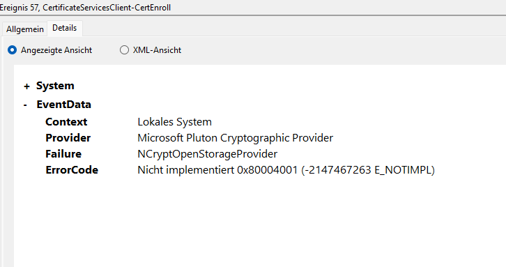 Aus den Ereignisprotokollen werde ich leider auch nicht schlau, dafür fehlt mir die Expertise.