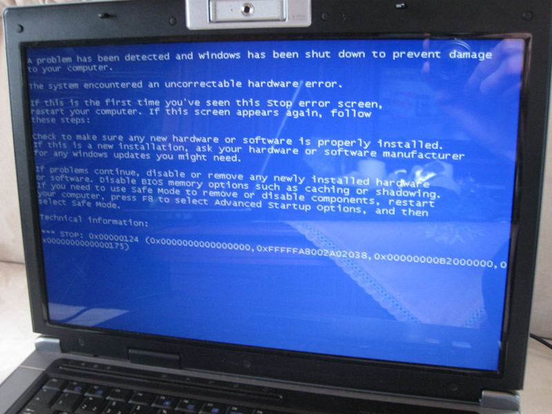 seit gestern gibt mein ASUS F5SL (Pentium T2390 1,8 GHz, 3GB RAM, 250GB HDD, ATI Mobility Radeon HD3470) ständig einen Bluescreen mit dem Fehler 0x00000124 aus (s. Bild). Meine Google-Recherche hat bisher nichts Hilfreiches ergeben. Habe schon Memtest86 4.0 (Test 5), SeaTools für die HDD und CPU Burn-in sowie Mersenne Prime Test durchlaufen lassen, allerdings hat kein Programm Fehler angezeigt.