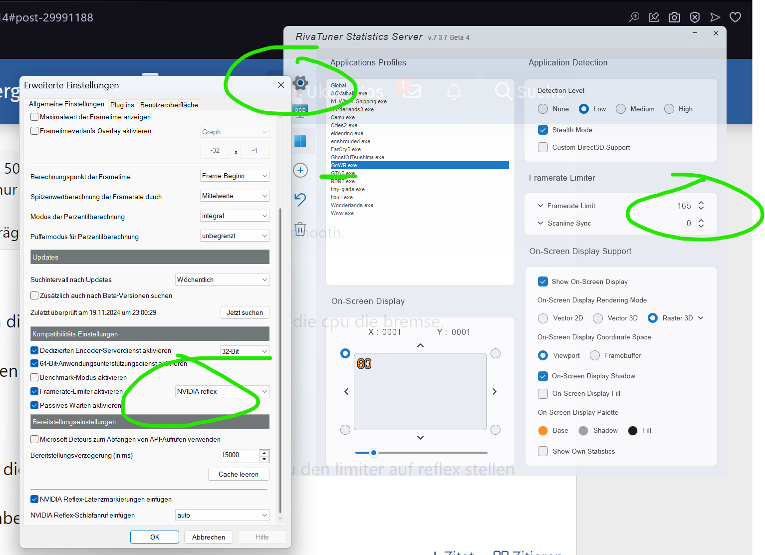 FPS Cap auf einen haltbaren wert. solltest du die fps mit rivatuner cappen musst du den limiter auf reflex stellen