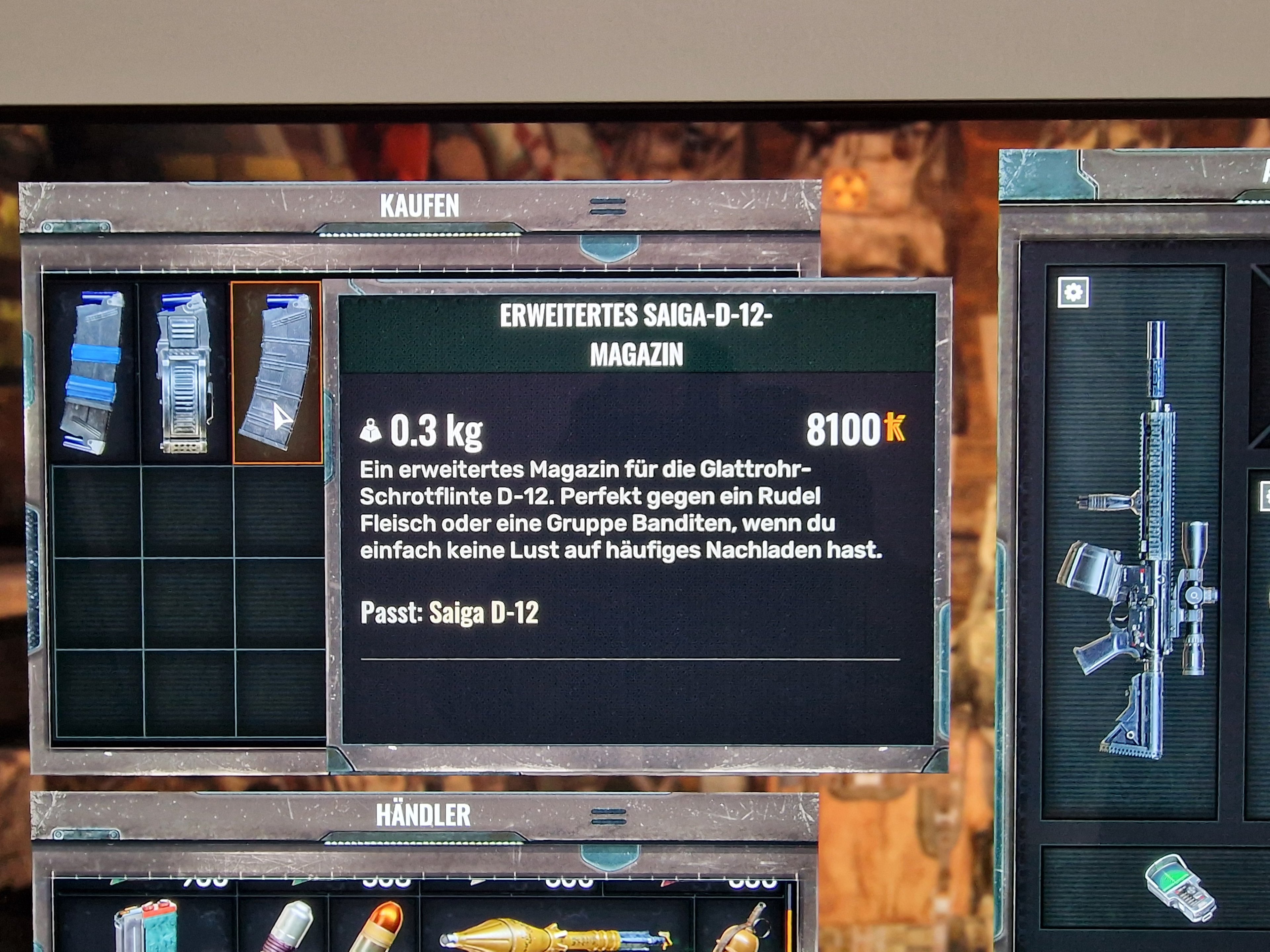 Für die Saiga gibt es gleich 3 bessere Magazine: verbunden (jeweils 8 Schuss), erweitert (12 Schuss) und das Trommelmagazin (20 Schuss).
