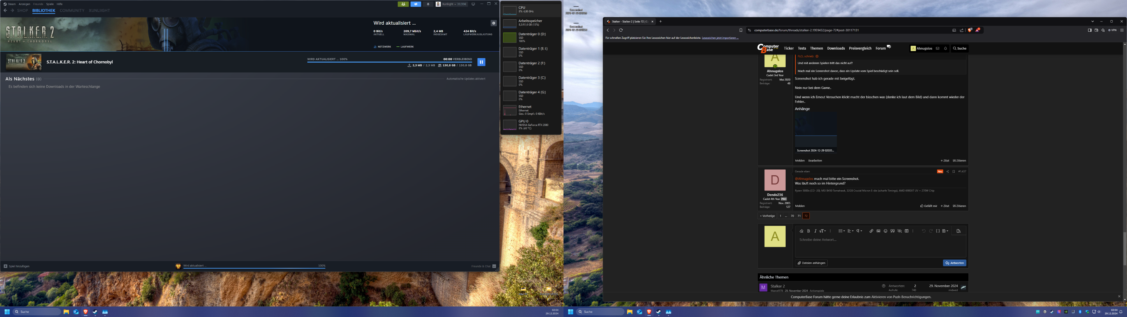 seit heute bekomme ich eine fehlermeldung am anfang beim shader kompilieren, und ingame frisst das spiel nach kurzer zeit den kompletten ram auf - es stürzt dann mit fast 64gb ram usage (99%) ab.