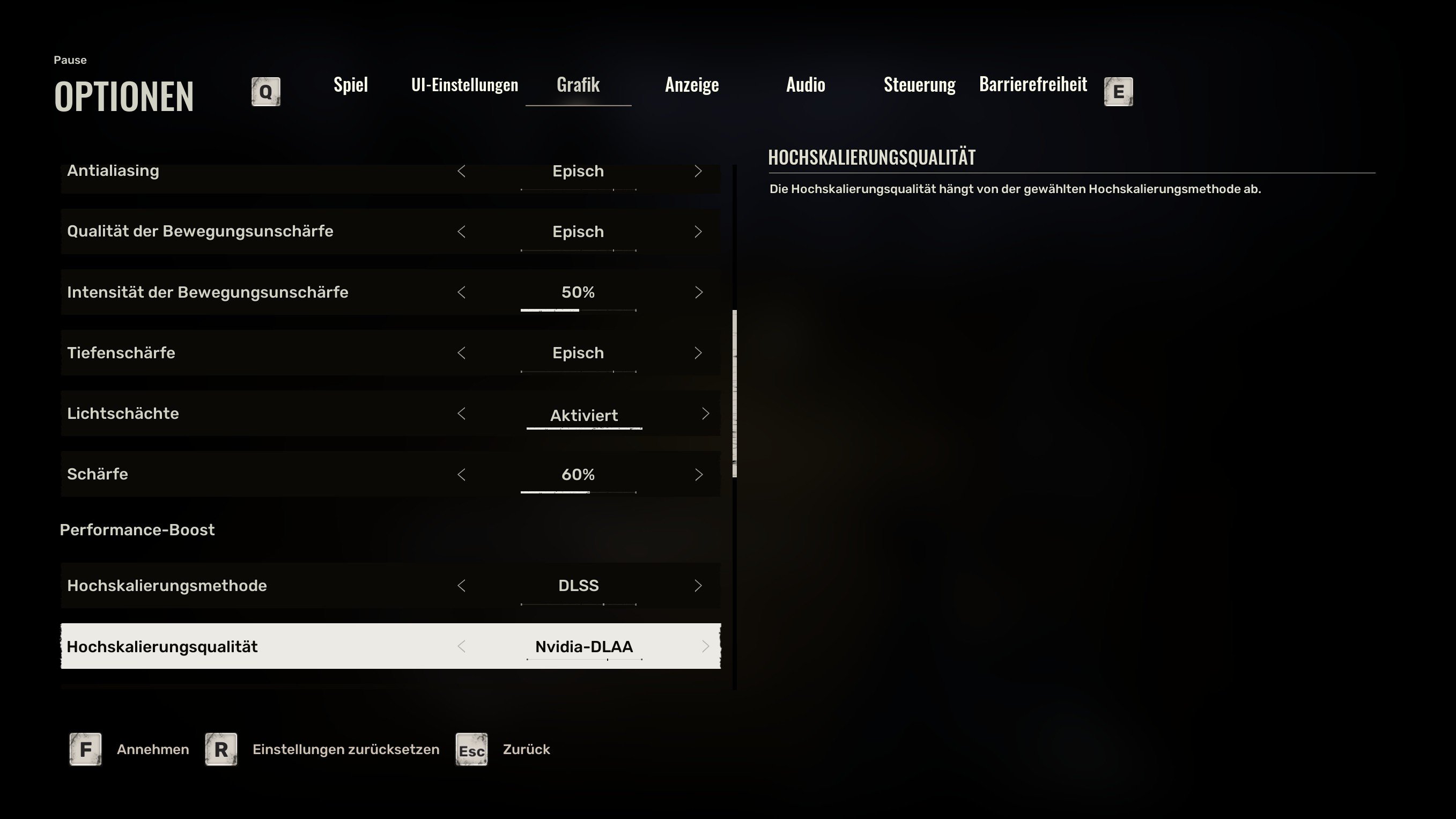 Komme so auf 60 FPS. Sieht aber auch nicht allzu ansehnlich aus. Und läuft trotzdem nicht wirklich flüssig. Fühlt sich insgesamt sehr träge an. Wahrscheinlich wegen FSR. Kann damit auch keine Scopes mit diesen roten Zielpunkt nutzen, weil die total buggy sind. Ohne FSR sind die FPS aber halbiert und da macht’s auch keinen Spaß. Grafik runter drehen, um ohne FSR auf 60 FPS zu kommen, sieht gruselig aus.