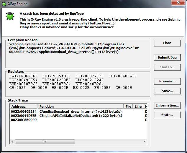Und zwar habe ich Stalker COP nun das dritte mal installiert mit dem Patch 1.6.0.2 und jedesmal nachdem ich die Grafik settings hochschrauben will, da sie am anfang standart ist und ich das Game danach neu starte kommt diese xrayEngine Fehlermeldung. (siehe Angang)