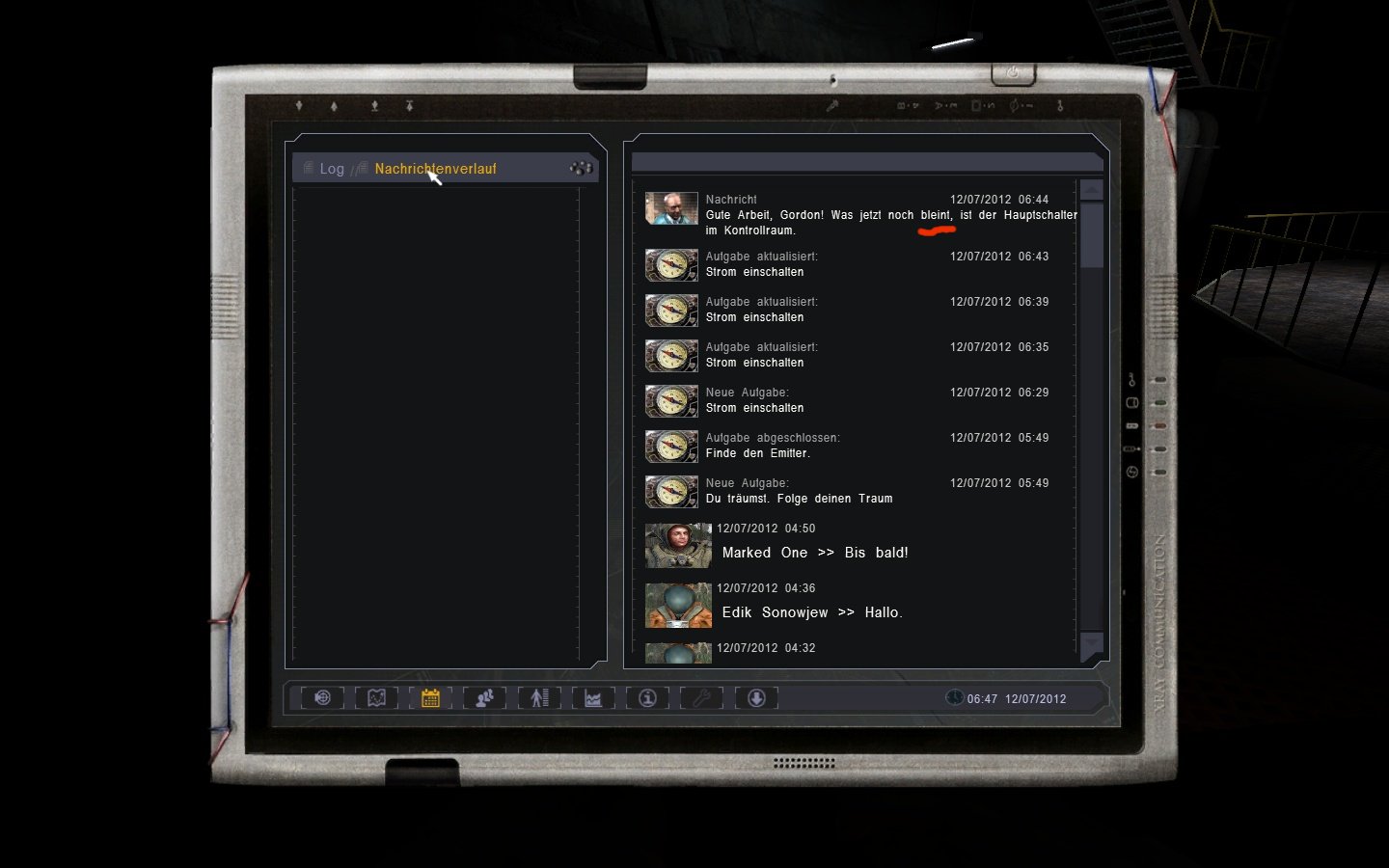 Storytechnisch bin ich...err..nicht so weit eig. " Join Duty ", bei der ich nur die Nachricht zu Voronin überbringen muss, deshalb in Gargabe, auf dem Weg zur Bar und "Talk with the scientist", die ist noch unberührt. Außer " Kill Strelok ", der eh die ganze Zeit da ist.