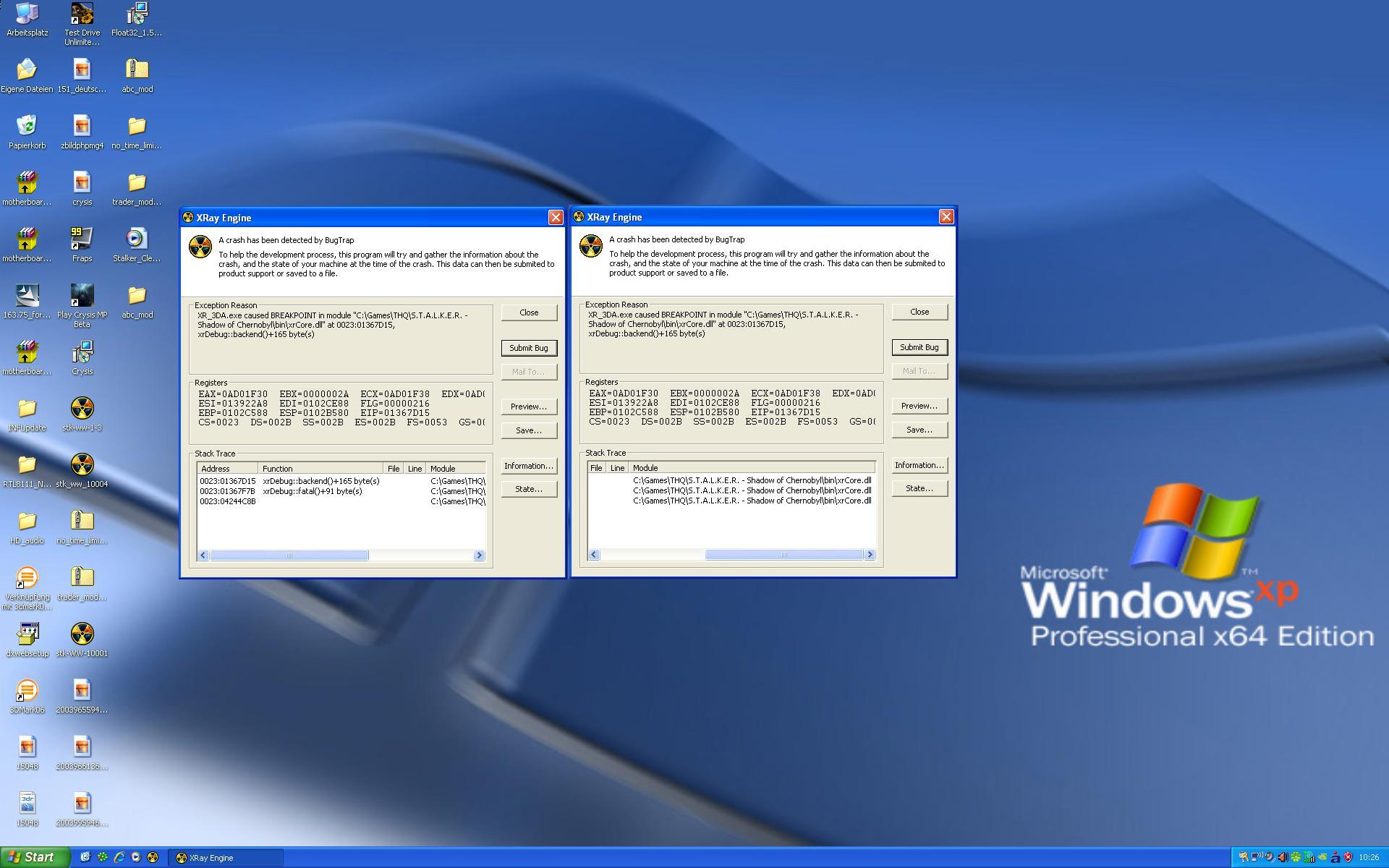 Wenn es abstürzt nimmt es gelegendlich den rechner mit, eine Fehlermeldung kommt in Prypjat nicht zu stande. Wo anders gibts dann immer mal den Crash mit "Fehler senden", wie üblich wenn man das Geld für ordentliche Tester lieber in sinnlose Kopierschutz-Techniken investiert.