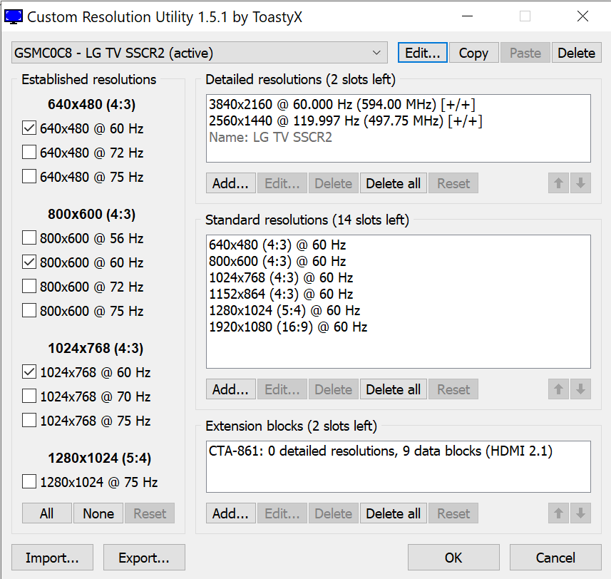 Also mit CRU lassen sich anscheinend nur Auflösungseinstellungen vornehmen. Ich möchte aber die Farben verändern. Mein Gerät weisst einen deutlichen Grünstich auf. Auch Gammawerte lassen sich nicht abrufen. Bei LG gibt es für den C2 noch nichts.anappleaday schrieb:Software nennt sich CRU: