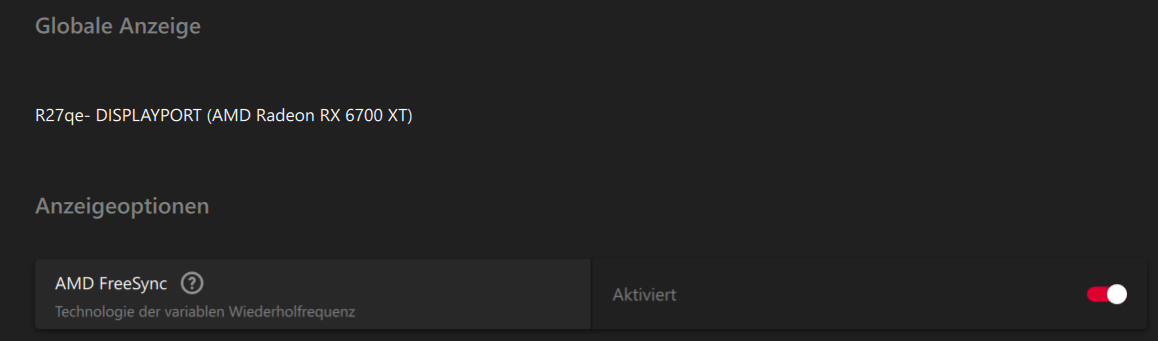 Hast du auch im Monitor Free Sync aktiviert?Ist im Gerätemanager der Monitor auch voll erkannt und nicht nur als generischer PnP-Monitors?