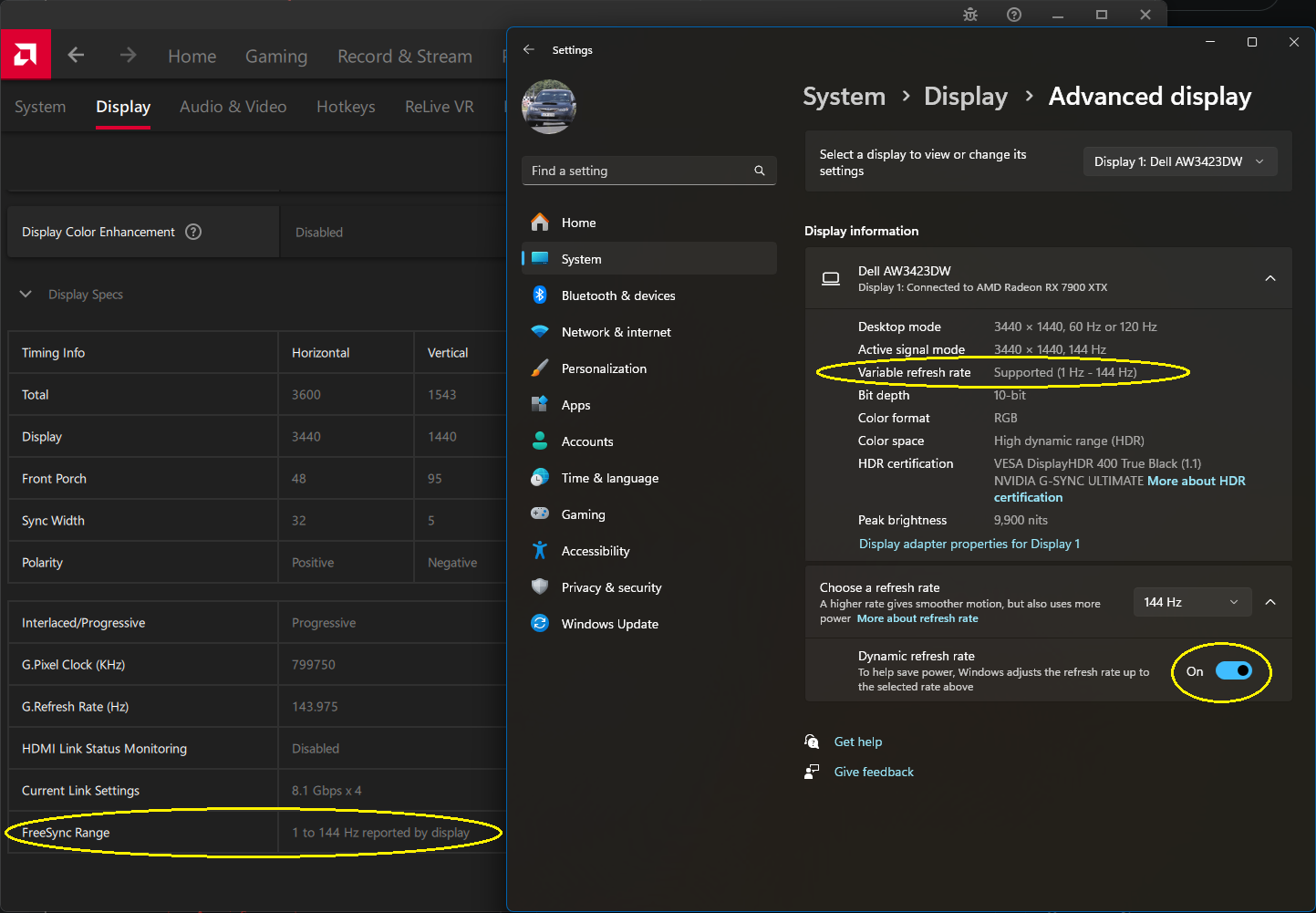 (Bild #2: Aus techpowerup Forum. User hat 1-1144hz VRR mit einer AMD Karte an einem G-Sync Ultimate Monitor.)