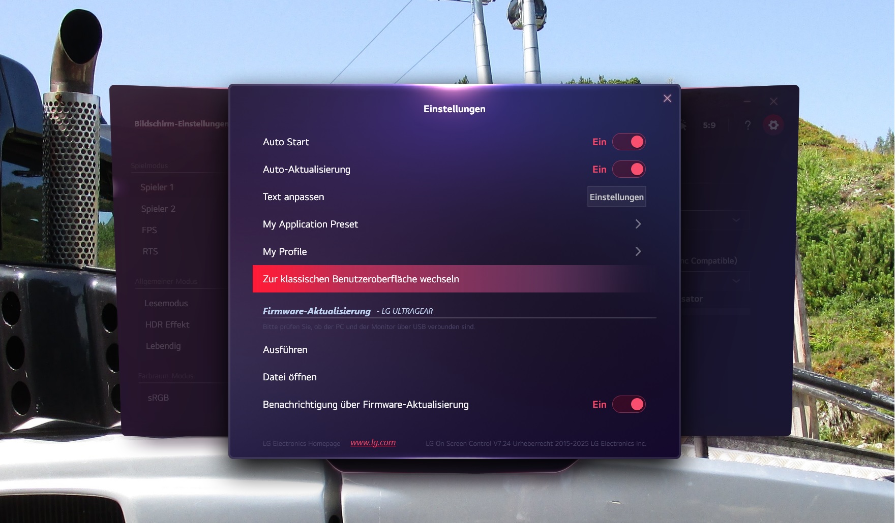 Das ist die Windowssoftware... Davon gibt es aber auch die andere Benutzeroberfäche. Die ist nicht ganz so gut. Die Neue hingegen ist Top. Funktioniert einwandfrei. LG hat die überarbeitet wenn ich mich nicht täusche...VenoXj1 schrieb:Ist dass das OSD? Bei mir sieht das Menu am Bildschirm selbst ganz anders aus, viel schrecklicher. Habe das OSD aber auch noch nicht runtergeladen.