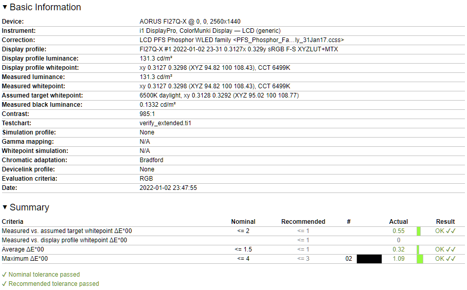 Color: User - RGB entsprechend mit Colorimeter