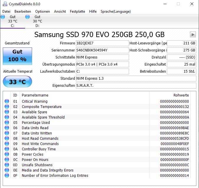 Speicher 1 Kapazität Samsung 970 EVO 250 GB