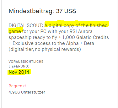 Direkt auf Kickstarter wurde von November 2014 geredet. Da sind wir jetzt 5 Jahre drüber.