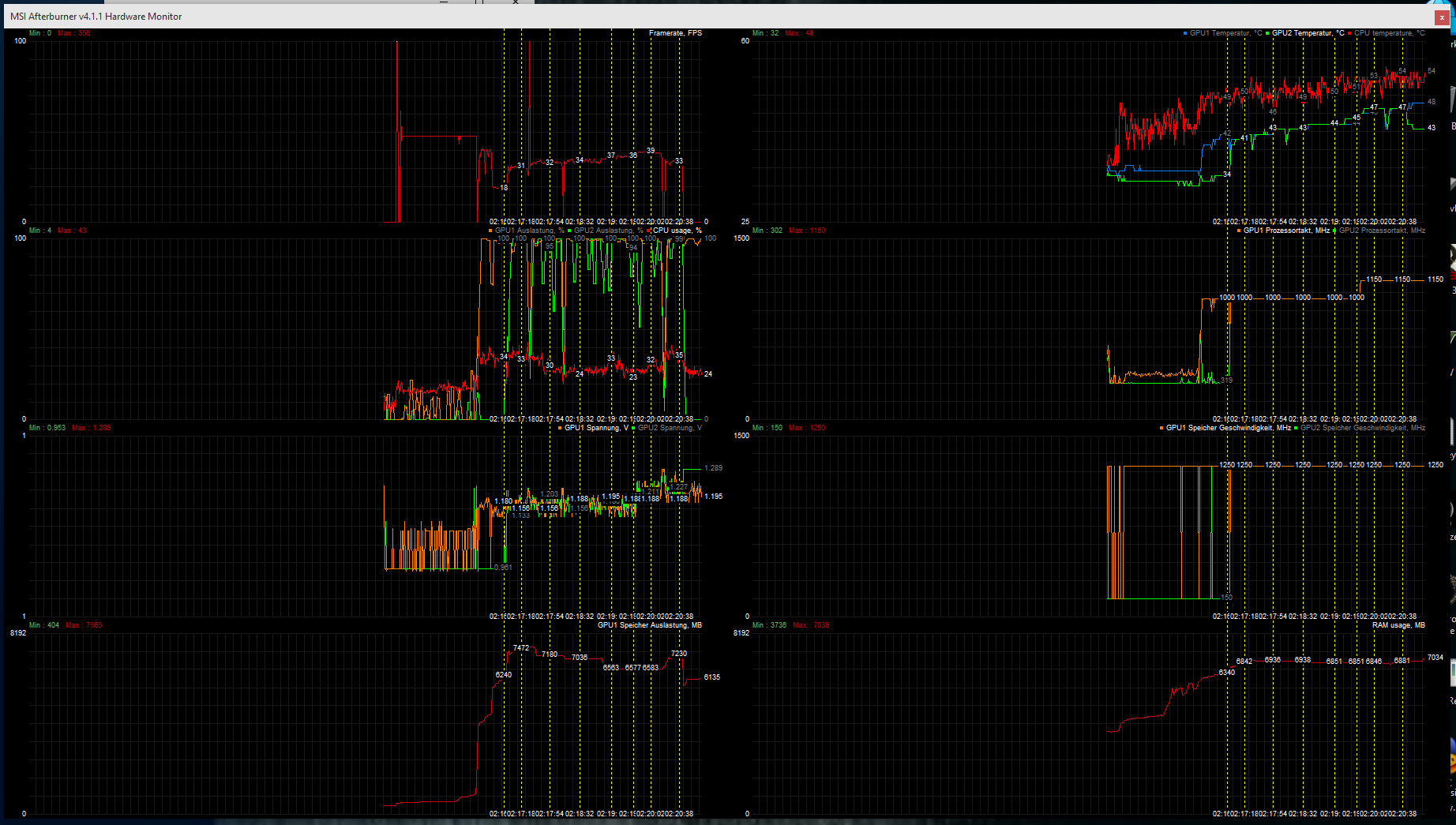 Hmm im CPU-Z habe ich das jetzt nicht gesehen mit CPU Auslastung ............MSI Afterburne muss ich mal einen Fragen der mir das erklärt mit den Zeilen und Spalten damit das inGame angezeigt wird.