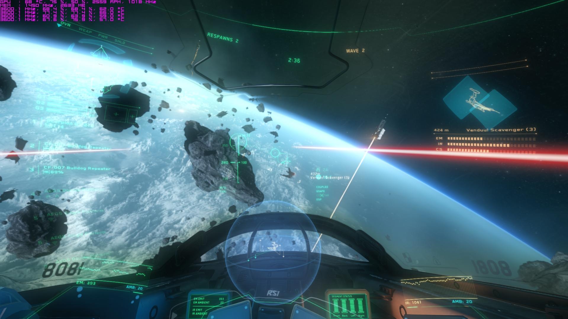 - Leider hat der Screenshot die FPS nicht mit gezeigt... Ich hatte im Freeflight Very High um die 50 FPS und im Vaduul Swarm ca. 32 - 37 FPS im Setting Very High