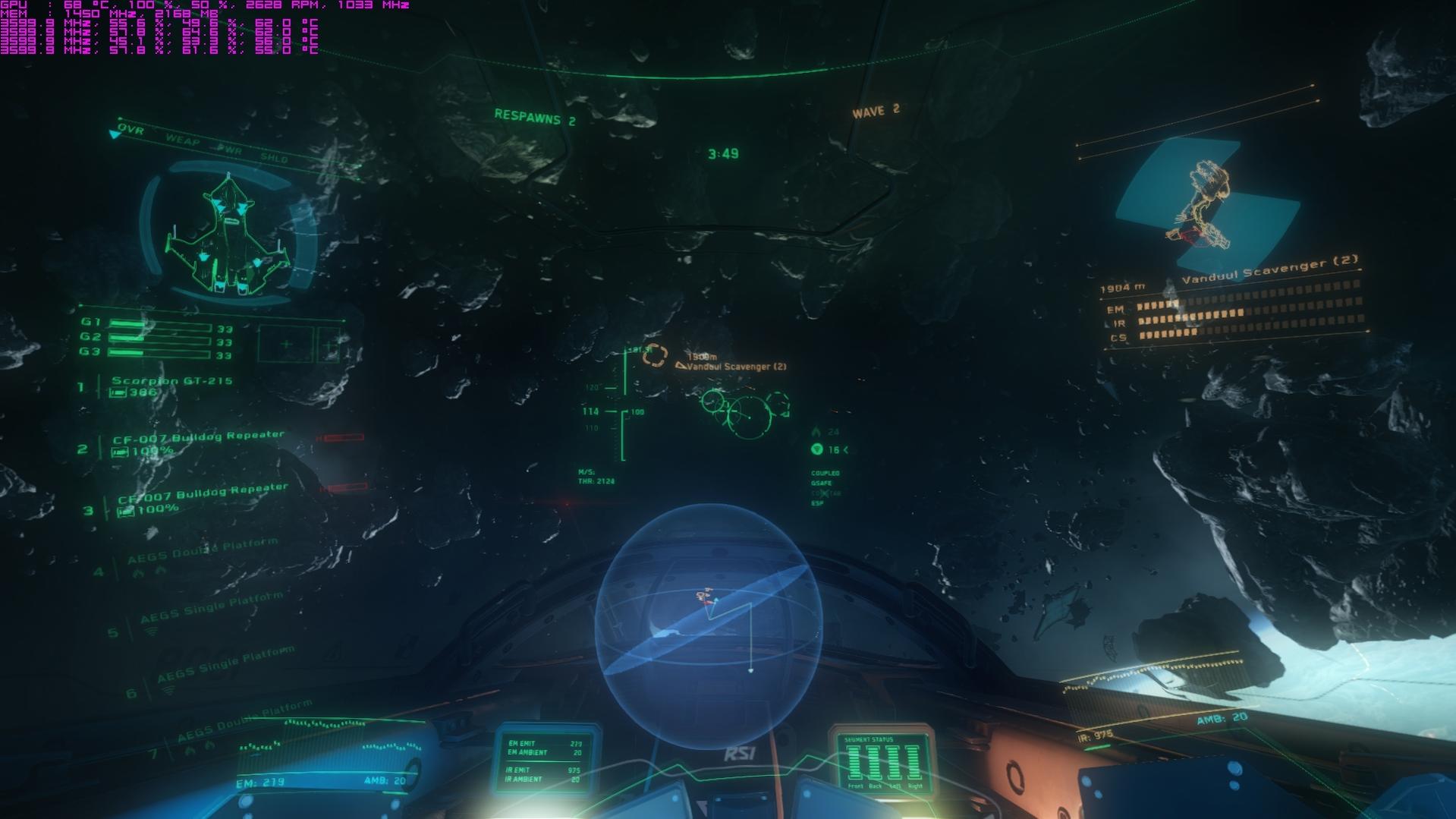 Ich erkenne es daran, das bei Very High im Hangar die GPU richtig ackern muss, aber im Vaduul Swarm die Mhz nicht auf die 1100 Mhz kommen und immer zwischen 1000 und 1050 variieren.