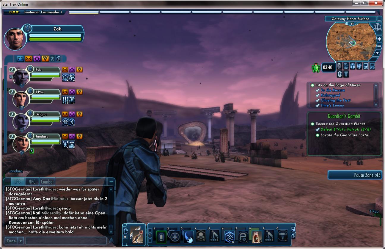 Ja wie bereits gesagt, Cryptic stellt wunderbare Grindspiele her. Und ich muss Wintermute zustimmen, ein MMO was nur von Eigenphantasie lebt, hat das Ziel verfehlt ein MMO zu sein. Da kann man gleich imaginäre Freunde haben und im Gedanken ein sternenflotte Offizier sein. Ein MMO muss nicht nur gute Grafik bieten, es muss eine Gefühl der Immersion erzeugen! Und das kann man nur mit ausgebauter, in sich stimmiger Welt erreichen. Sogar wenn das Spiel nur aus Text bestehen würde.