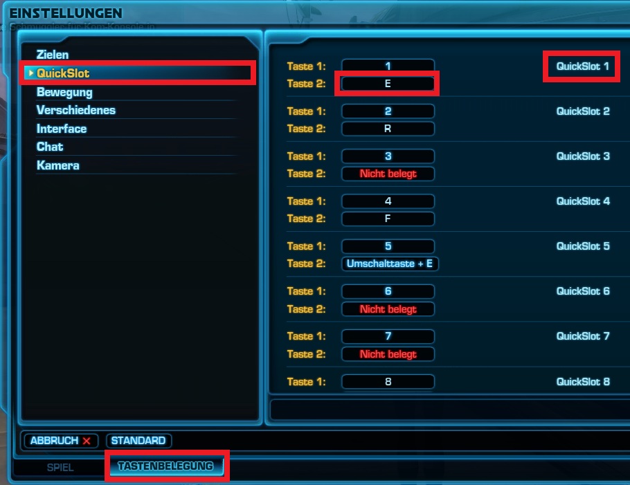 Anbei der Screen für das Optionsmenü um die Tasten frei zu belegen.