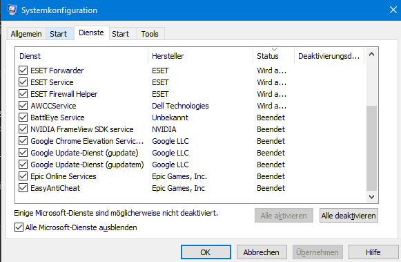 Ausführen: msconfig - Reiter "Dienste" - Alle Microsoft-Dienste ausblenden ?
