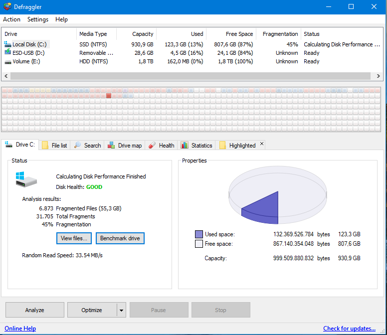 Defragger ist ein guter ersatz für den unzuverlässigen windows defrag das vermutlich nur noch nach mft defragmentiert.