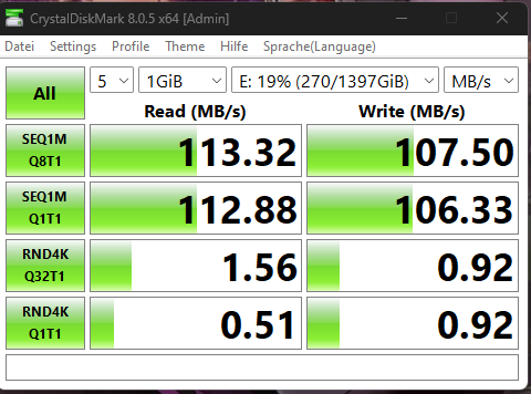 Die E Festplatte ist die HDD.AMD-Flo schrieb:Mach mal einen Crystaldiskmark mit allen Platten.