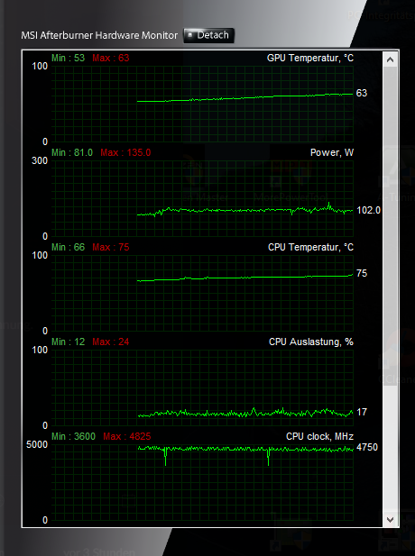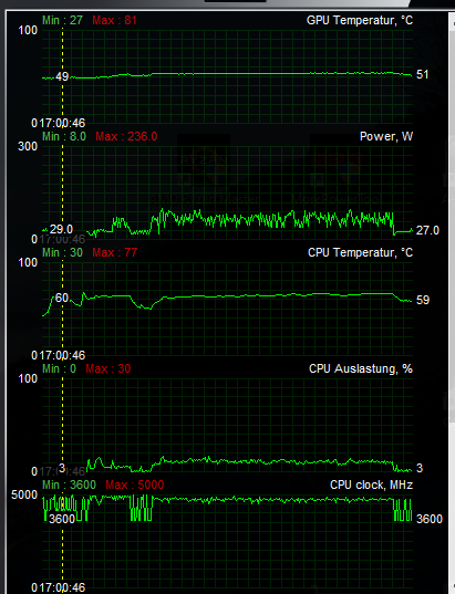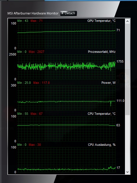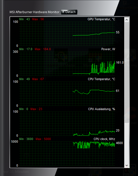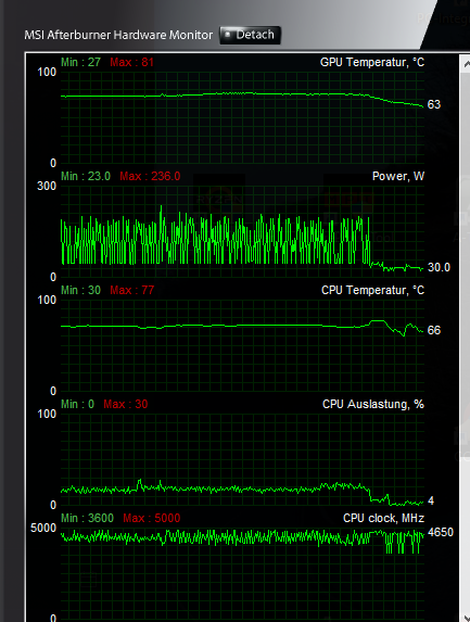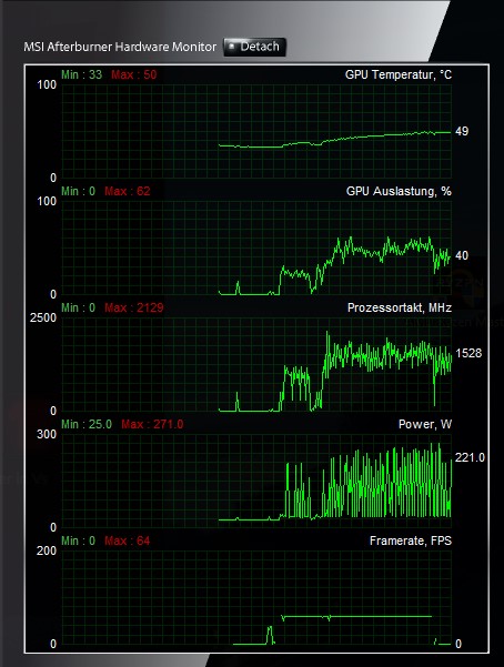 Ich habe im Game sehr starke Leistungsschwankungen zwischen 30W und 220W.