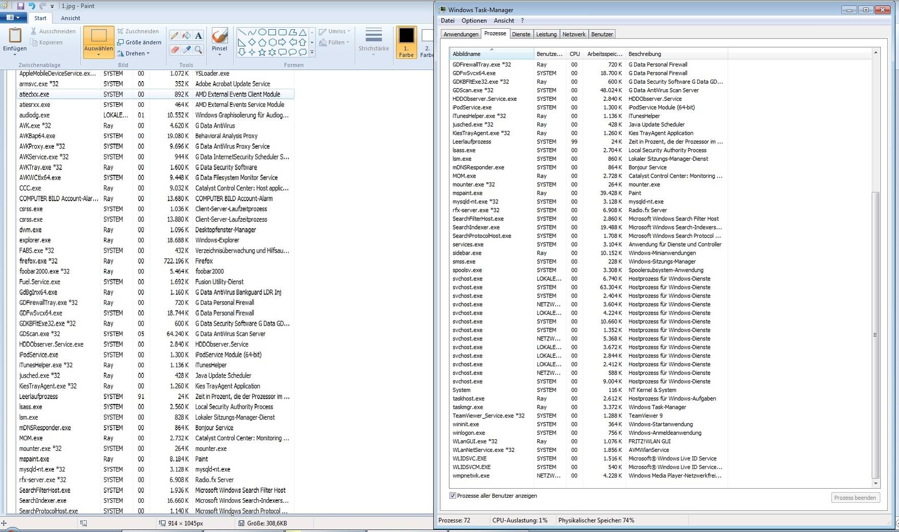 Also ging ich auf die Prozesse und rechnete mal die Ramauslastung zusammen weil diese mir viel weniger vor kam.