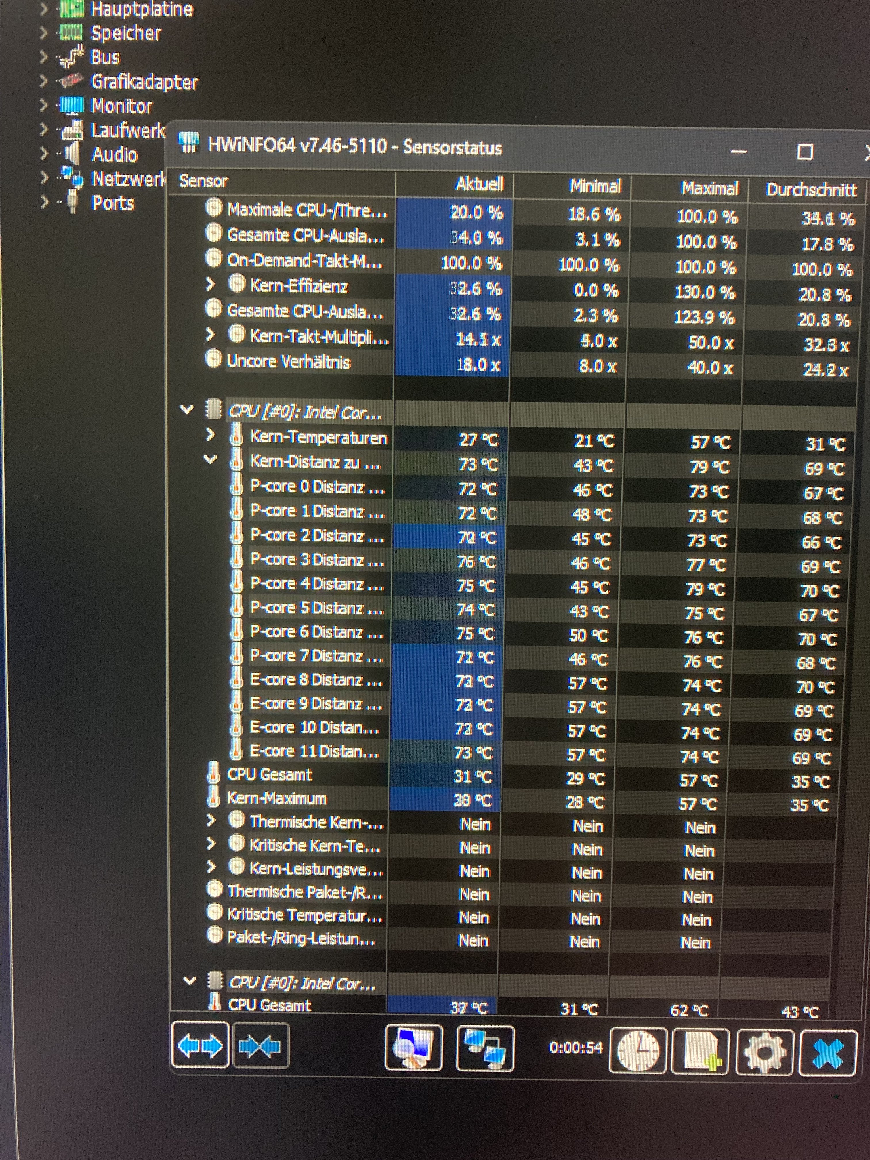 Und die „CPU Temperatur „ springt konstant mit der sporadischen Auslastung hin und her