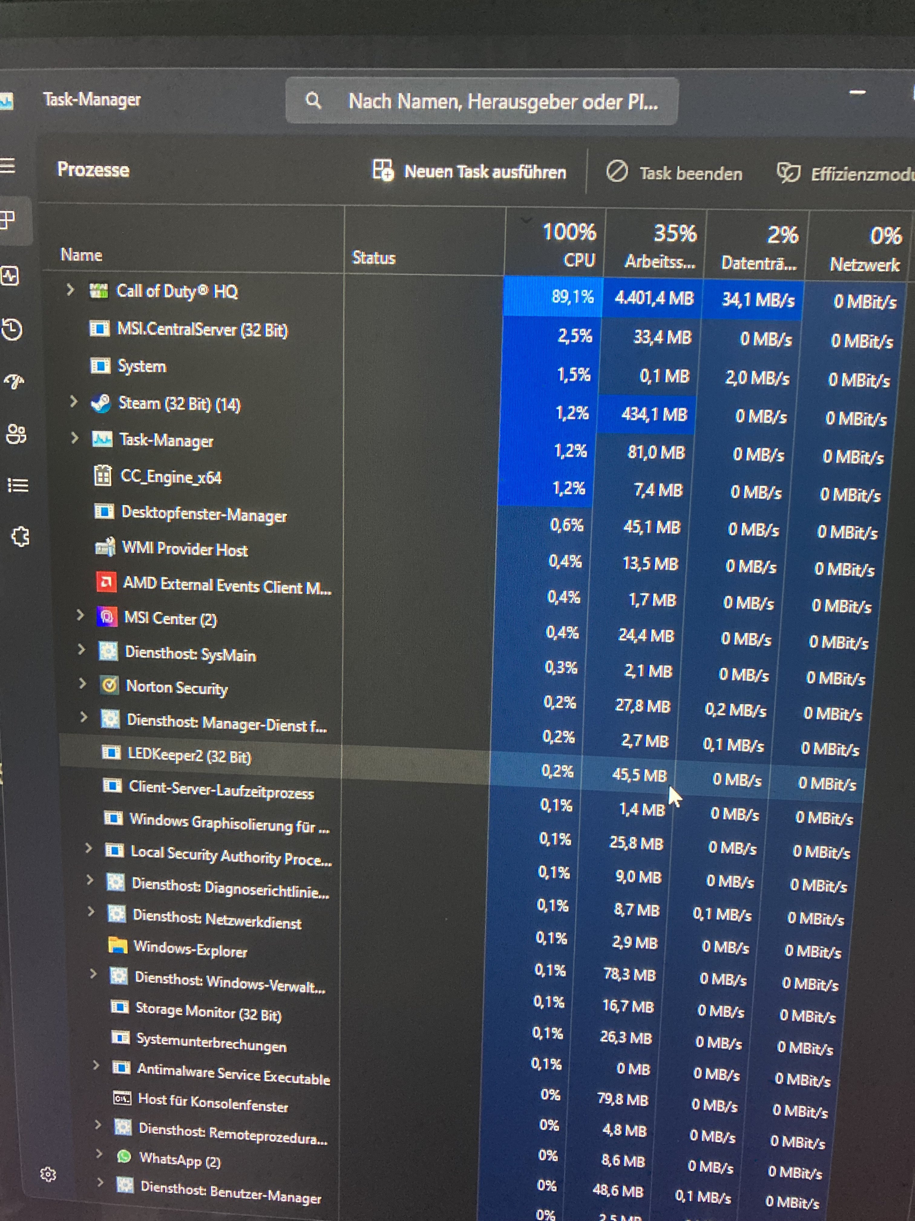 -> CCleaner, MSI-Center, das schreckliche Norton AV, irgendeine LED-Software