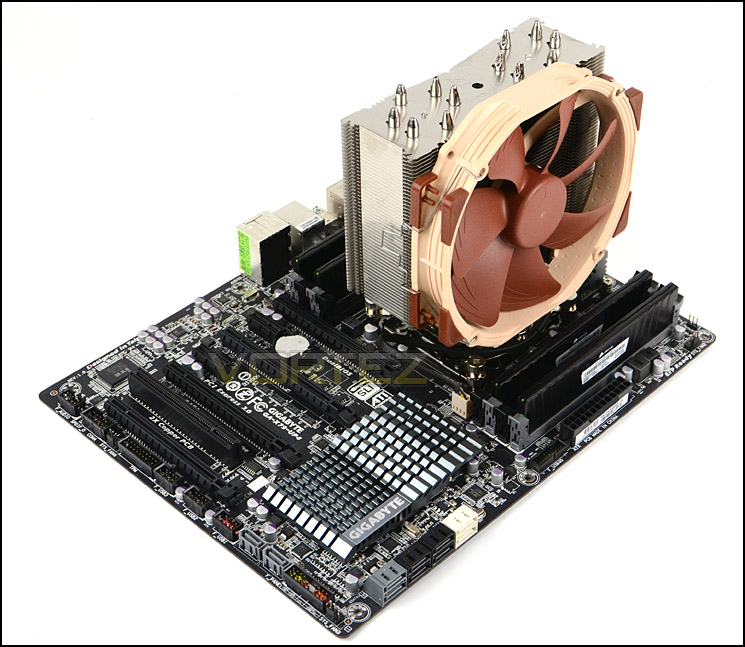 Und hier zum Vergleich der Noctua NH-U14S auf einem ATX Board: