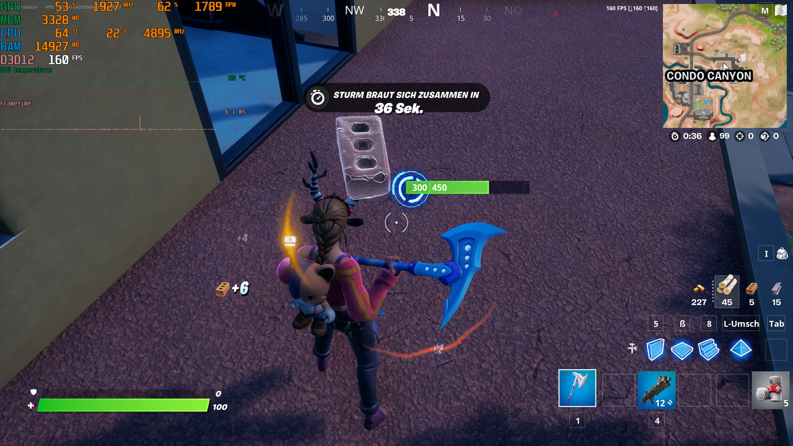 habe auch gedacht, aber ich habe jetzt mal fortnite wieder gespielt und nach den rucklern screen gemacht und dort sind 160fps -.-0ssi schrieb:2x genau 48FPS kann 144Hz mit V-Sync und Double Buffer sein also dann droppen die FPS auf einen Teiler