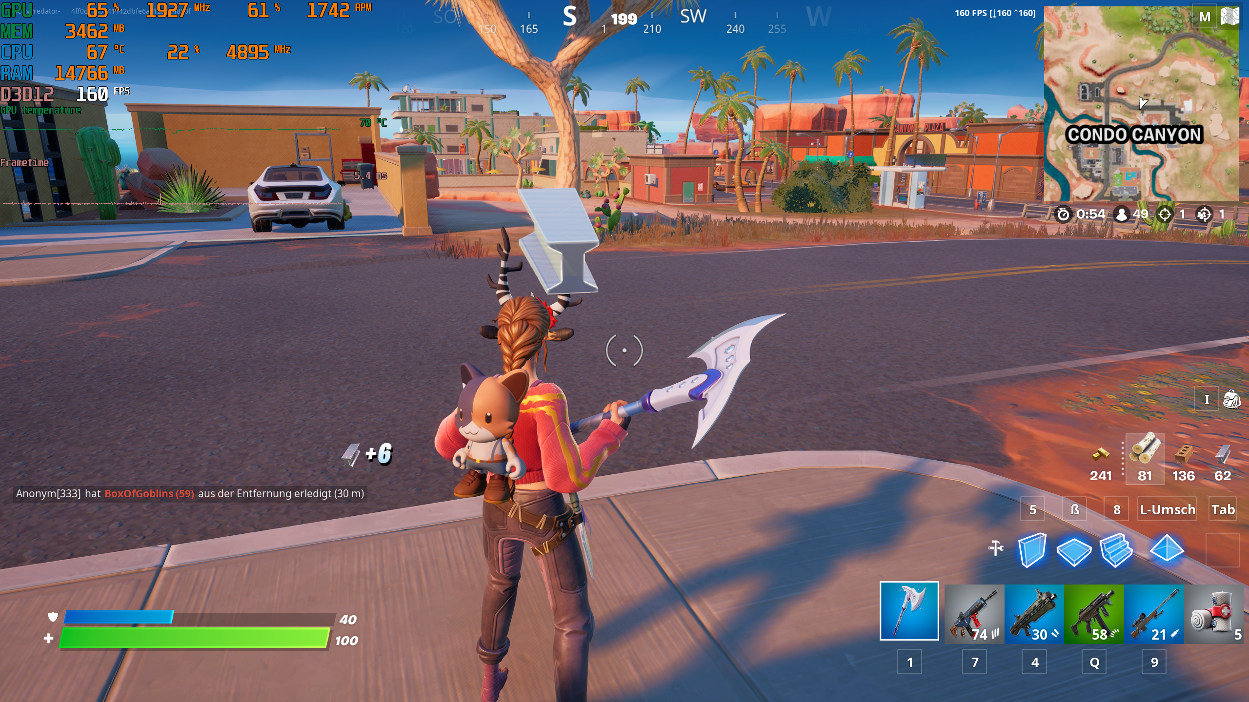bei fortnite ist auch 160 an.