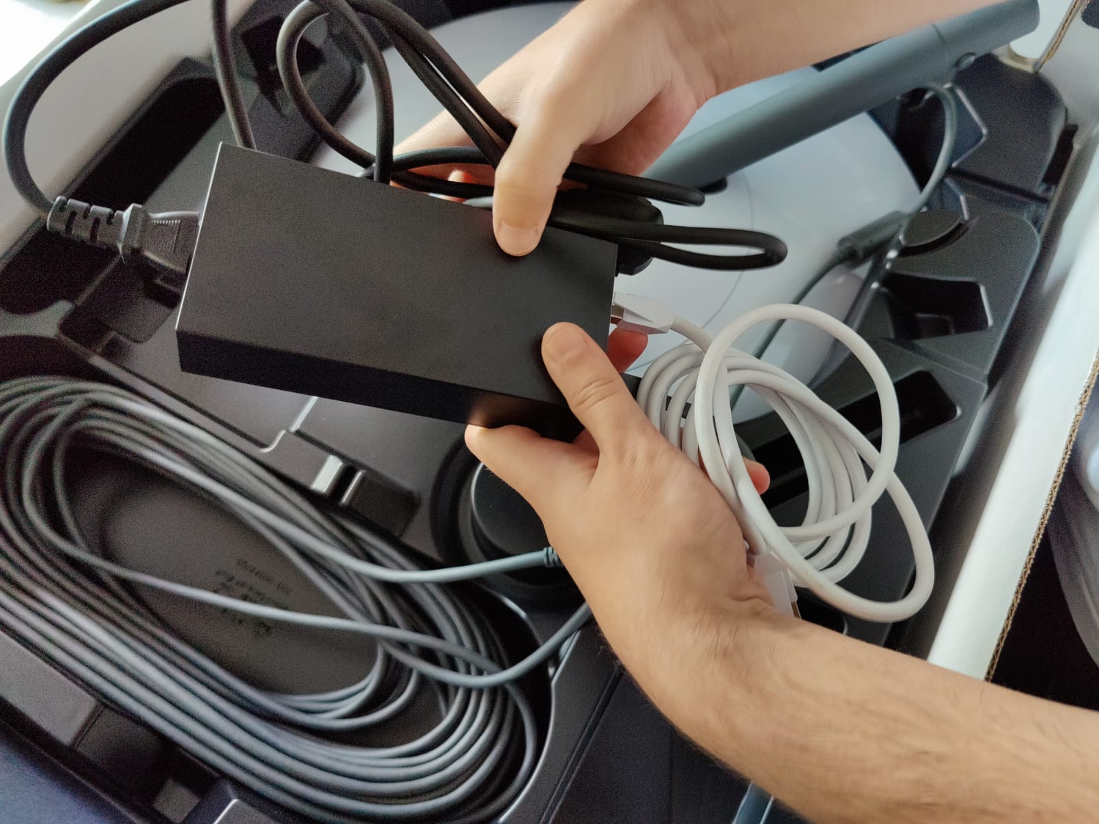 Der mitgelieferte Router sowie die Satellitenschüssel mitsamt der dort integrierten Technik wird via eines PoE-Injektors mit Strom versorgt. Das Kabel vom Injektor zur Satellitenschüssel hat eine Länge von 30 Metern und ist relativ dick und witterungsbeständig. Im Paket inbegriffen ist ebenfalls ein PoE-fähiges Ethernet-Kabel, das den Injektor mit dem Router verbindet. Es hat eine Länge von ca. 1,5 Metern. Die Satellitenschüssel hat einen Durchmesser von etwa 60 Zentimetern und eine Gesamthöhe - je nach Neigung - von etwa 65 Zentimetern. Injektor, Router sowie die Satellitenschüssel kommen bereits fertig verkabelt beim Käufer an und brauchen quasi - abgesehen vom Einstecken der Schüssel in den Ständer - nur noch aufgestellt werden. Die Komponenten - ausgeschlossen die Schüssel und Verbindungskabel - müssen vor Feuchtigkeit und Frost geschützt sein.