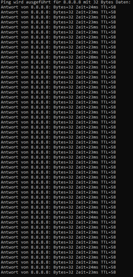 Lässt man den Ping länger laufen pendelt er sich zwischen 30-40 ms ein, gelegentlich auch mal bis an die 20 ms, selten sogar darunter.