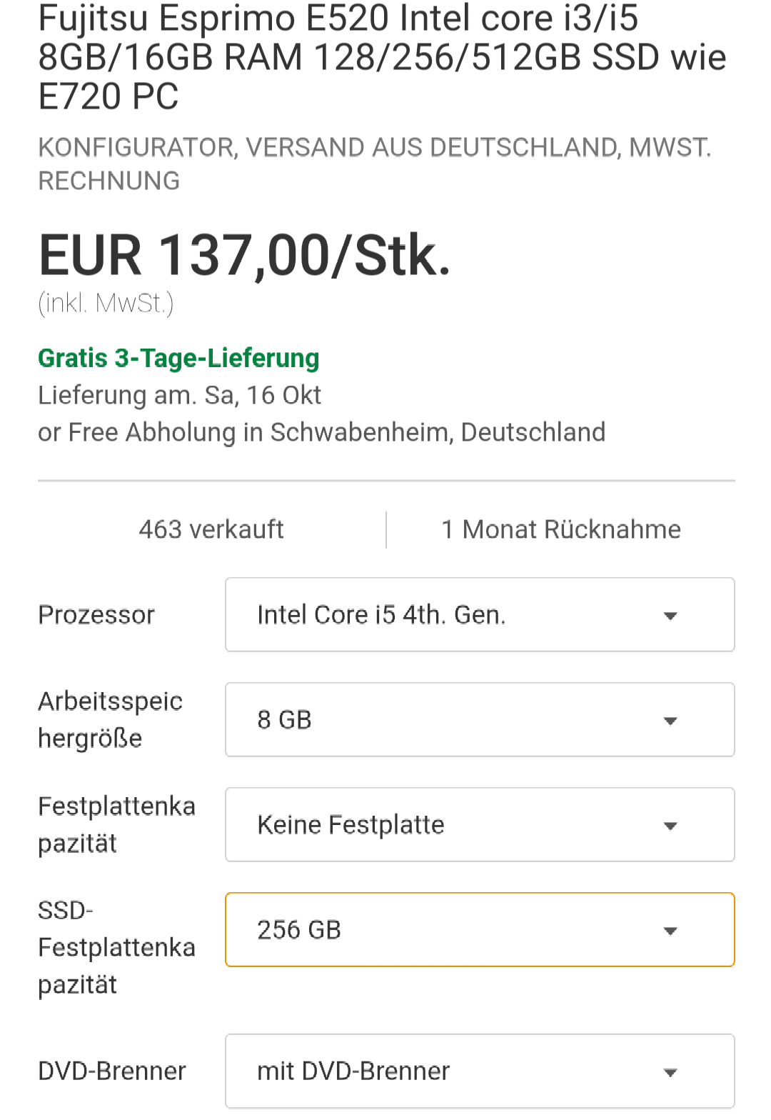 Es gehen auch gebraucht Geräte und ich habe mich eigentlich etwas in den HP prodesk twr 600 g1 i3 ver liebt weil a ) günstig und B ) simpel und mit Windows 10 . (64 Bit)