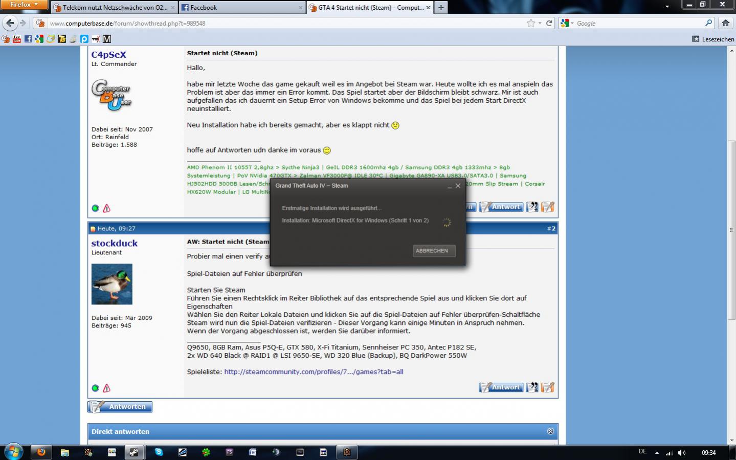 habe mir letzte Woche das game gekauft weil es im Angebot bei Steam war. Heute wollte ich es mal anspieln das Problem ist aber das immer ein Error kommt. Das Spiel startet aber der Bildschirm bleibt schwarz. Mir ist auch aufgefallen das ich dauernt ein Setup Error von Windows bekomme und das Spiel bei jedem Start DirectX neuinstalliert.