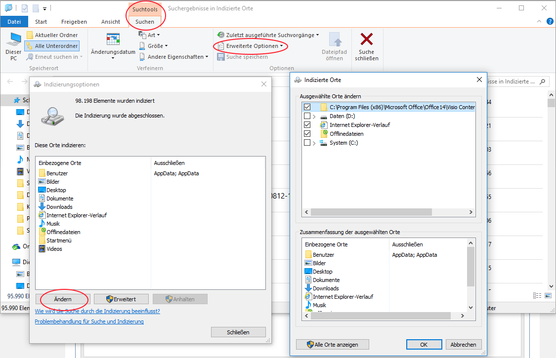 Kann ich es ausschließen, dass bei den Suchergebnissen bestimmte Verzeichnisse oder ganze Festplatten nicht "vorgeschlagen" werden, wenn ich in das Eingabefenster "Programme/Dateien durchsuchen" des Startmenüs Stichwörter eingebe?