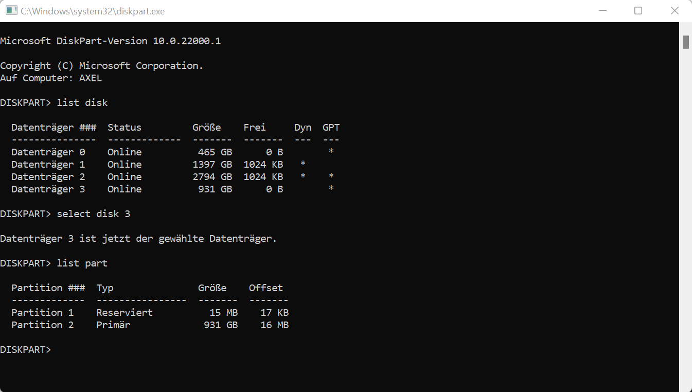 ->über Eingabeaufforderung folgende Befehle ausgeführt: