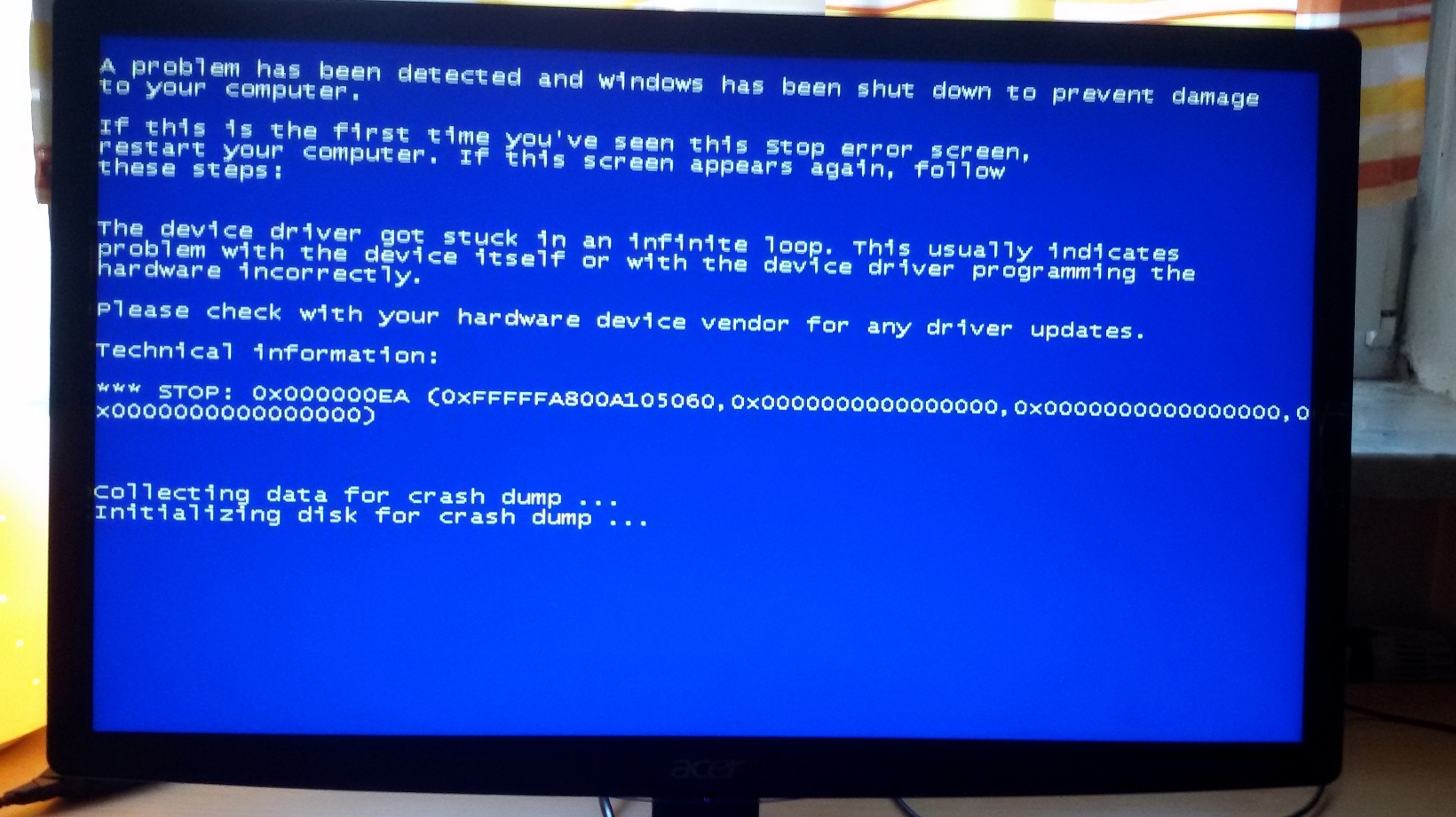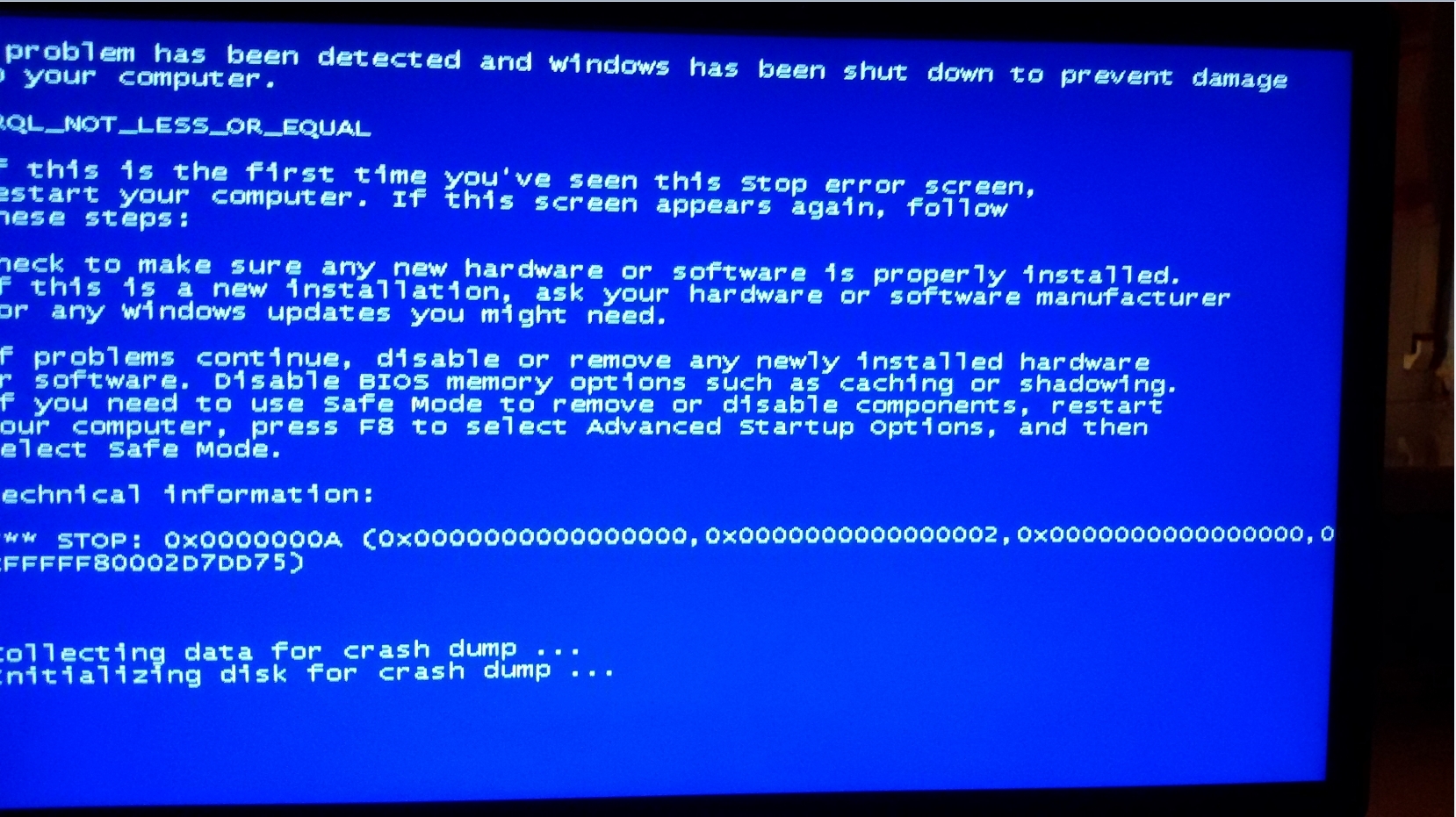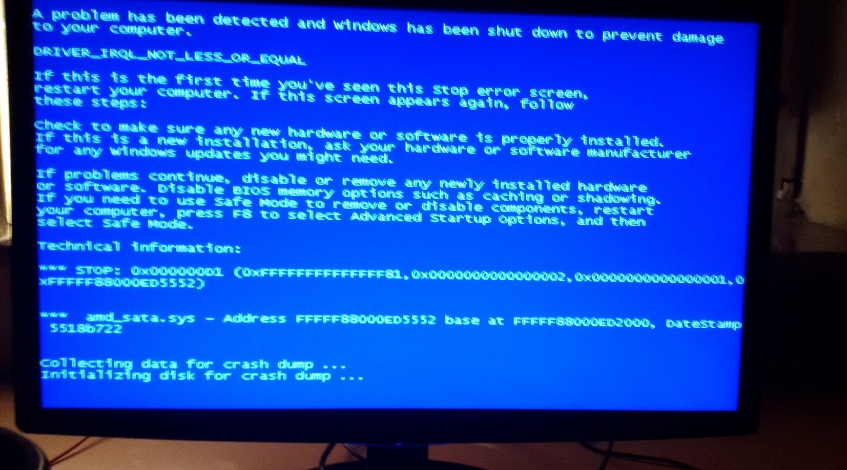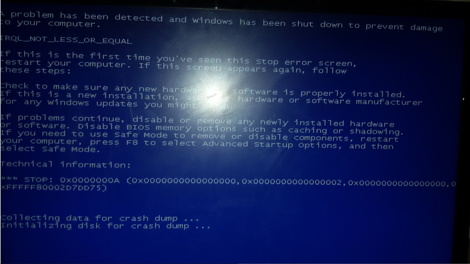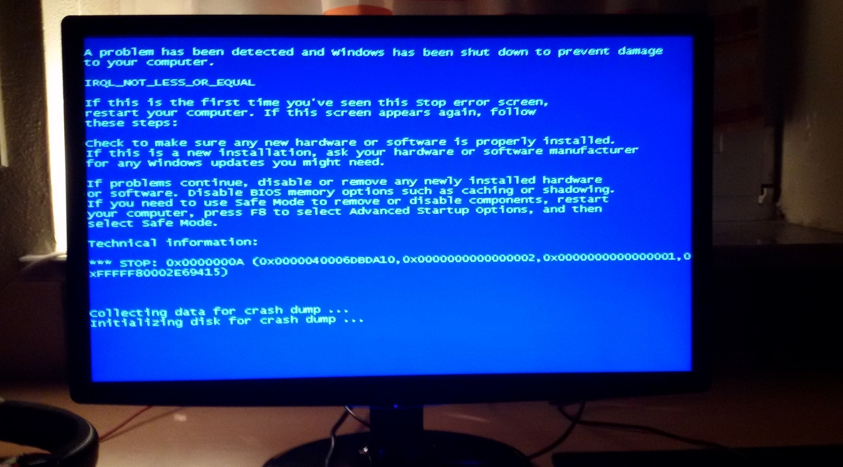Ich habe seit Wochen das Problem, wie im Titel bereits beschrieben, dass sich mein Computer beim Starten erst kurz hochfährt, dann wieder ausgeht und anschließend nach circa 4 Sekunden startet, wobei er meistens dann vom Monitor nicht erkannt wird. Um den Computer denn noch zum laufen zu bringen, muss ich komplett den Strom abstellen und nach einer Minute es noch einmal versuchen, mit etwas glück funktioniert er dann! Was in den letzten Tagen dazukam ist, dass ich so gut wie immer Bluescreens bekomme, kurz nachdem der Pc hochgefahren wurde, hier habe ich mal ein Paar Bilder davon gemacht: