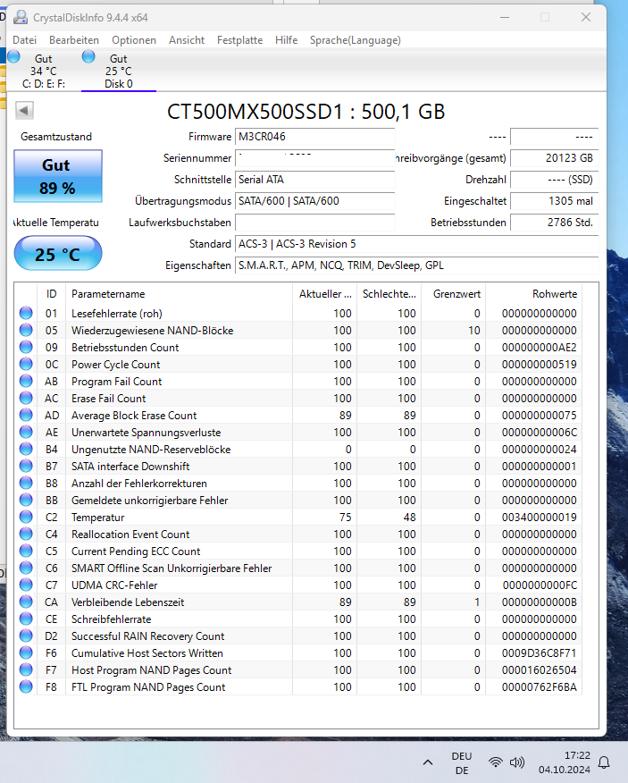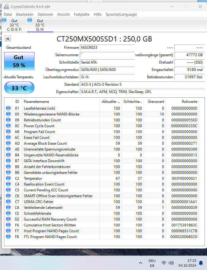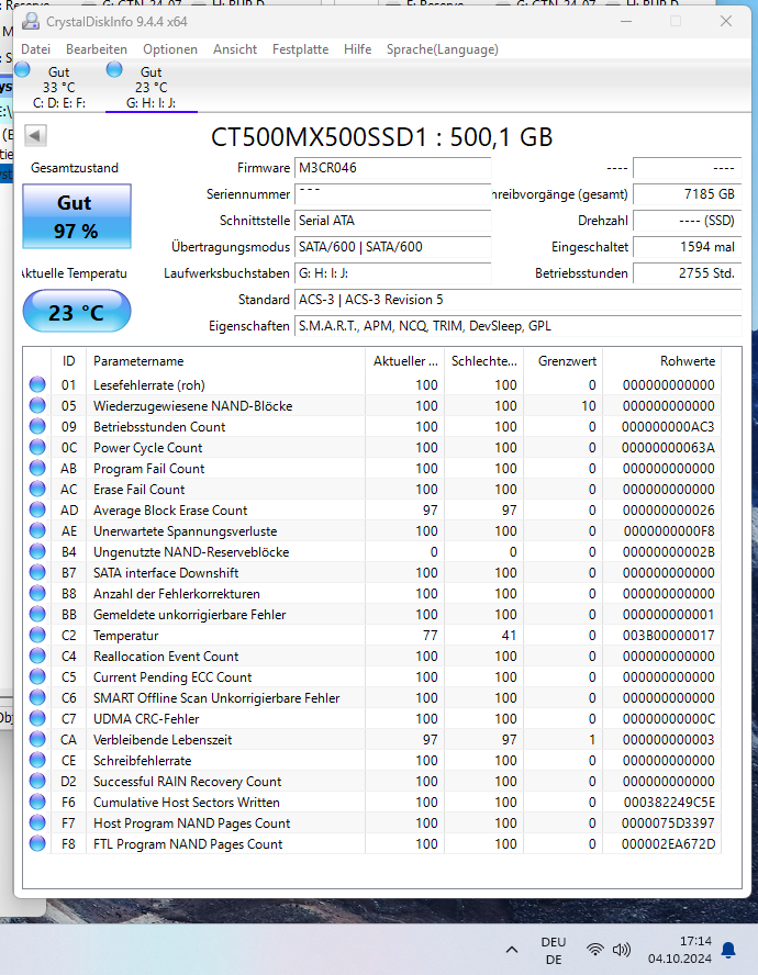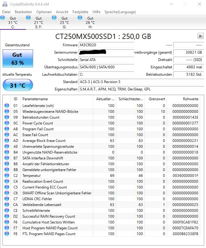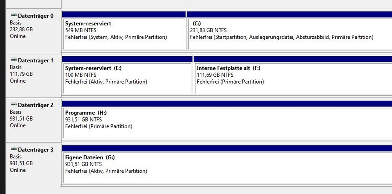 Bootreihenfolge ist in Ordnung. Physisch sind die Anschlüsse korrekt. Windows Hilfe zeigt über cmd Befehl mit Administratorrechten keine Fehler.