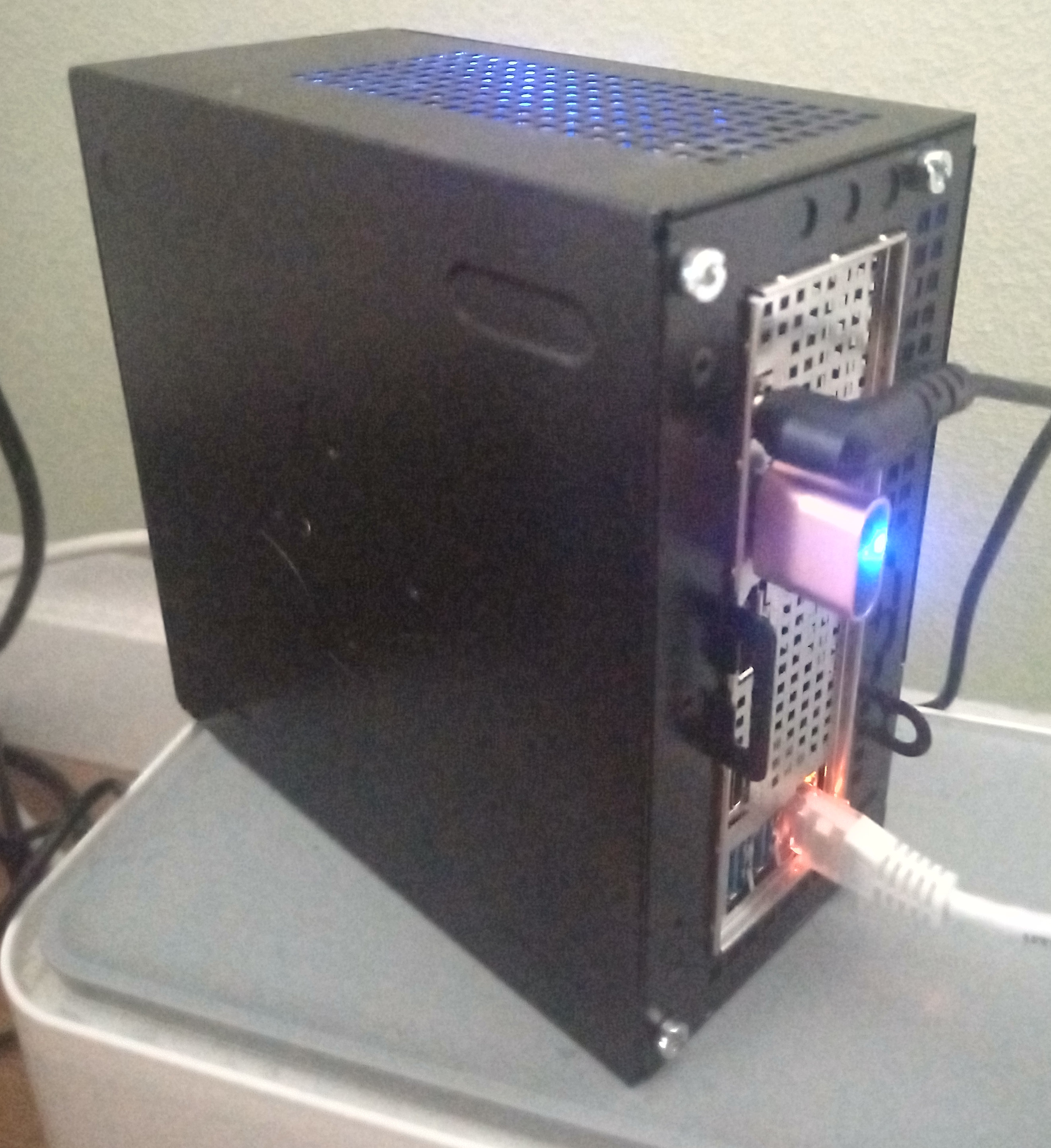 1. Der Rechner ist (bisher) nicht headless sondern via HDMI an einen meiner beiden Bildschirme (PHL 328B6Q) angeschlossen. Technisch gesehen hat der Mini PC auch einen Display Port Anschluss, aber der wird schon von meinem Haupt PC (Signatur) verwendet und der HDMI an meiner Haupt PC GPU ist bereit verwendet und daher keine Option.